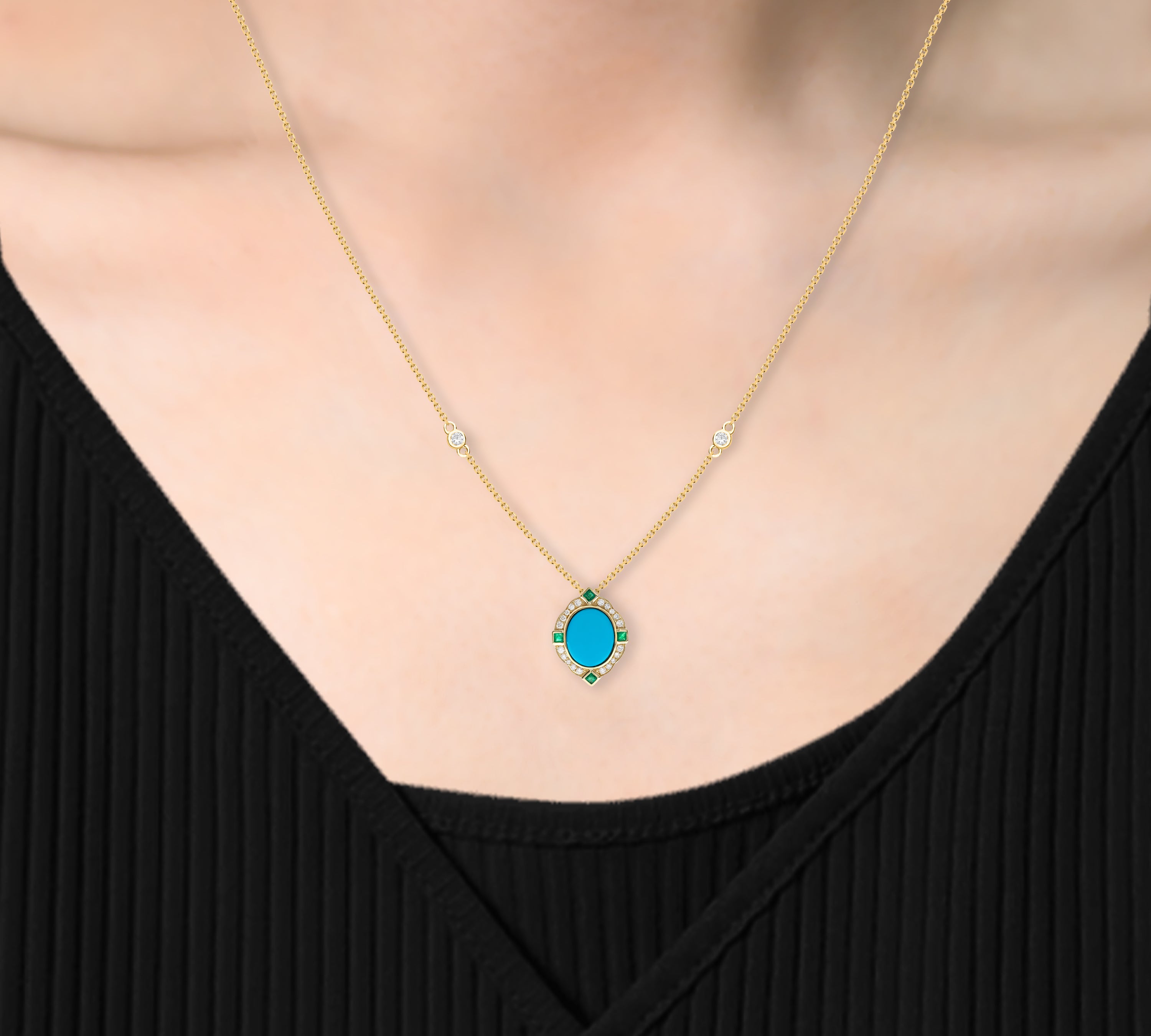 Sloane 14K Yellow Gold Oval-Cut Turquoise Pendant