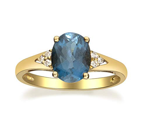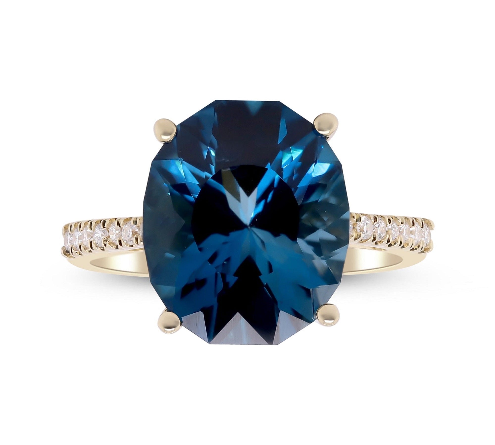 Blessing 10K Yellow Gold Oval-Cut Brazilian London Blue Topaz Ring