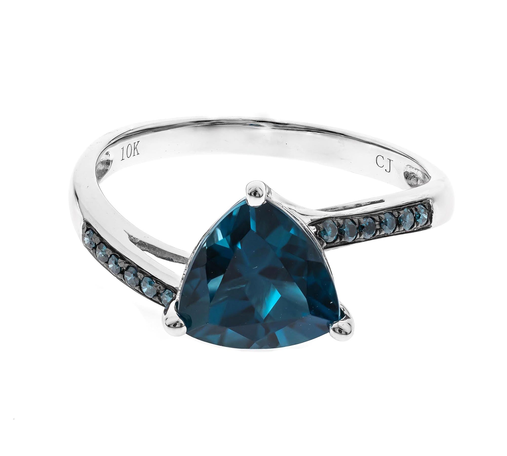 Natalia 10K White Gold Trillion-Cut Brazilian London Blue Topaz Ring