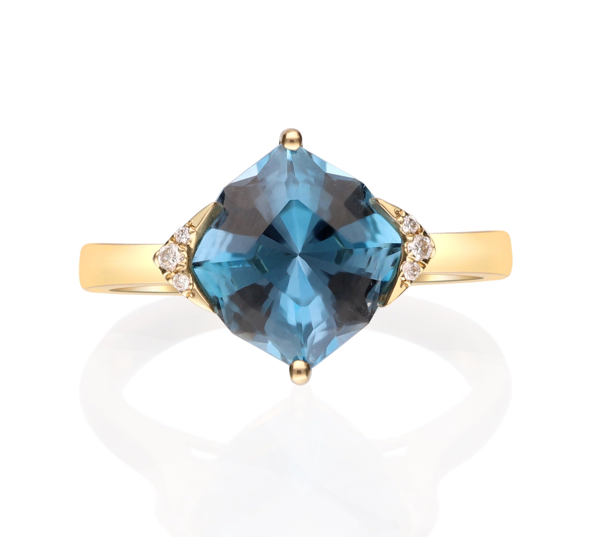 Kennedi 14K Yellow Gold Cushion-Cut Brazilian London Blue Topaz Ring