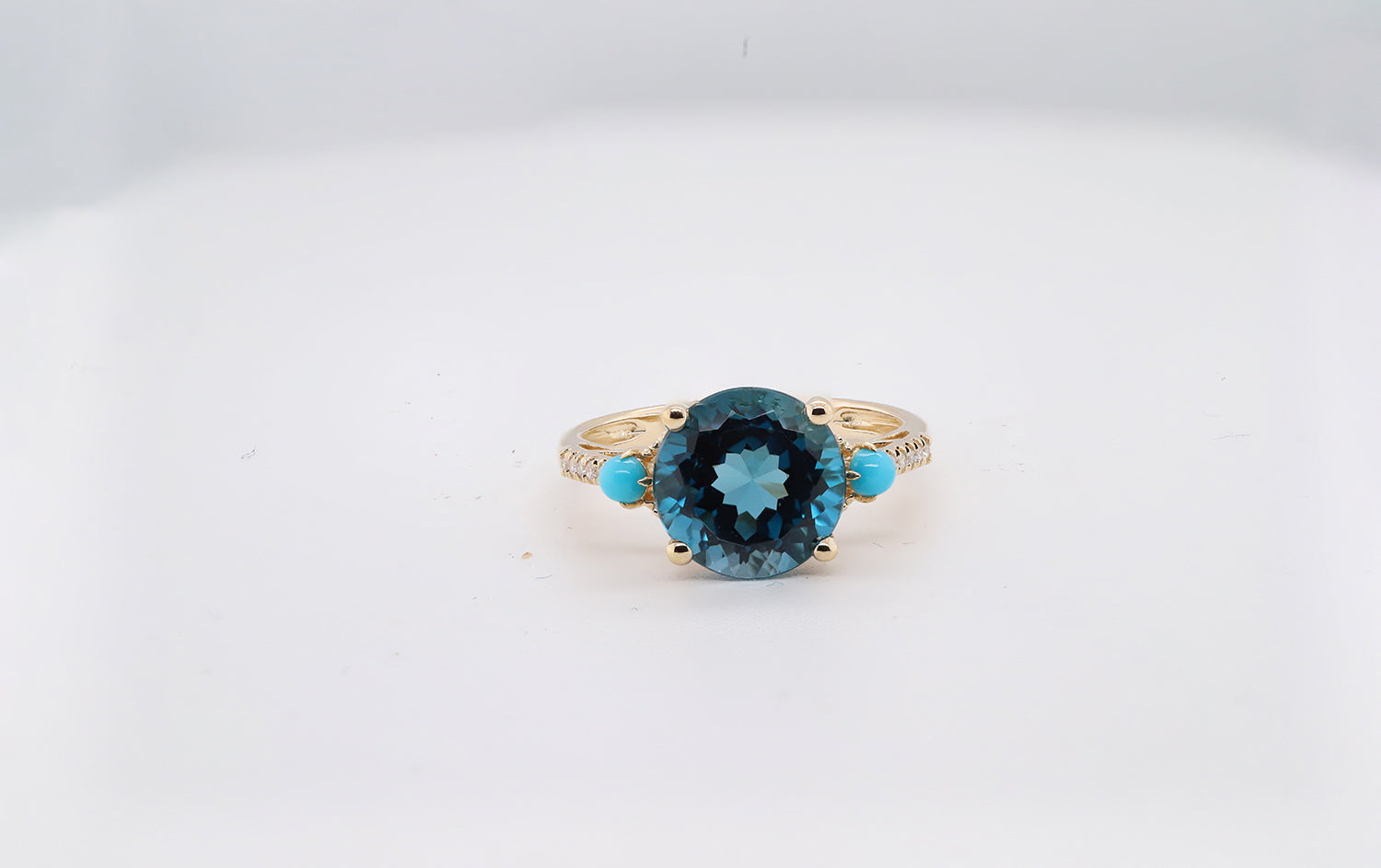 Paisley 14K Yellow Gold Round-Cut Brazilian London Blue Topaz Ring