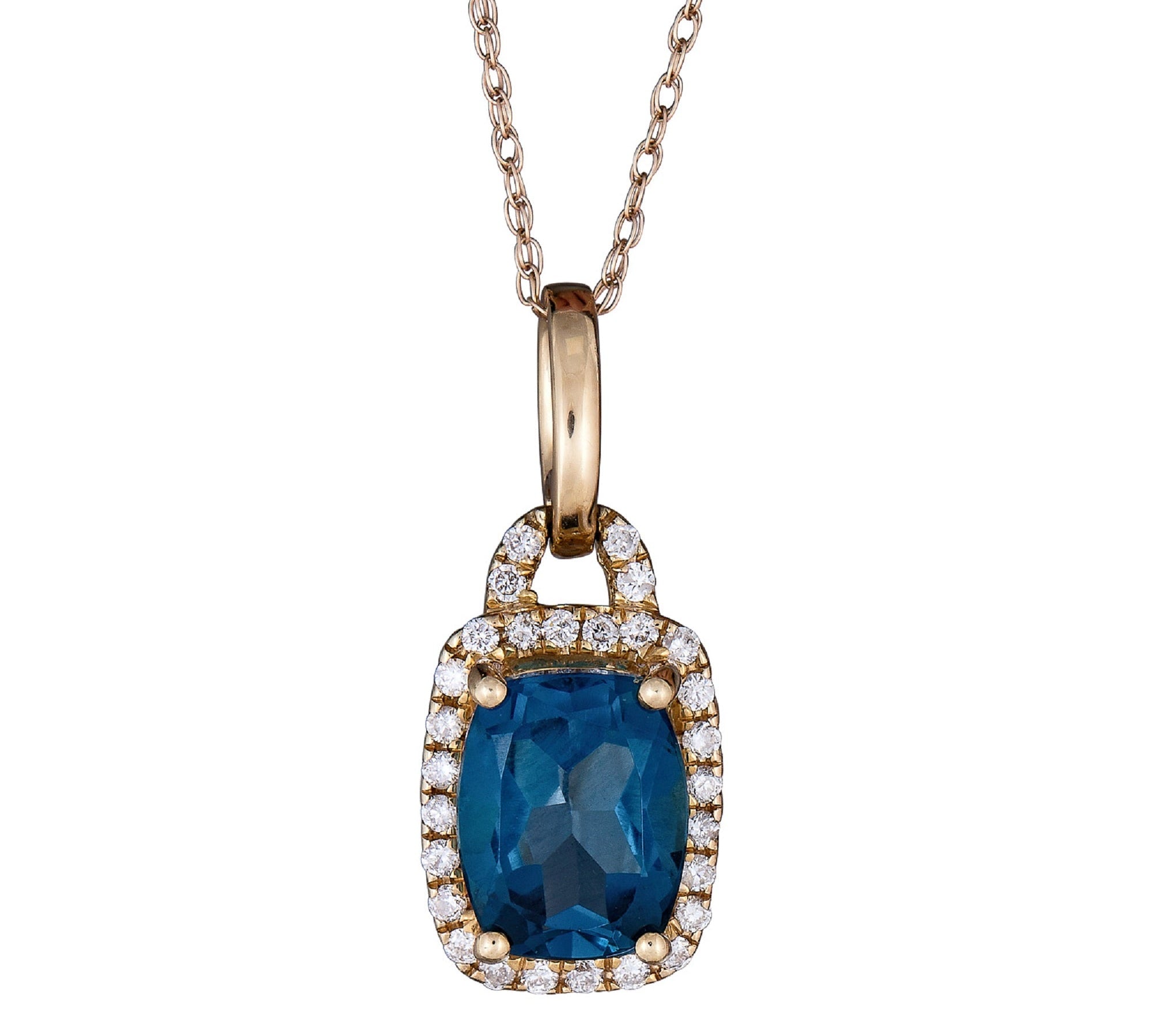 Winter 10K Yellow Gold Cushion-Cut Brazilian London Blue Topaz Pendant