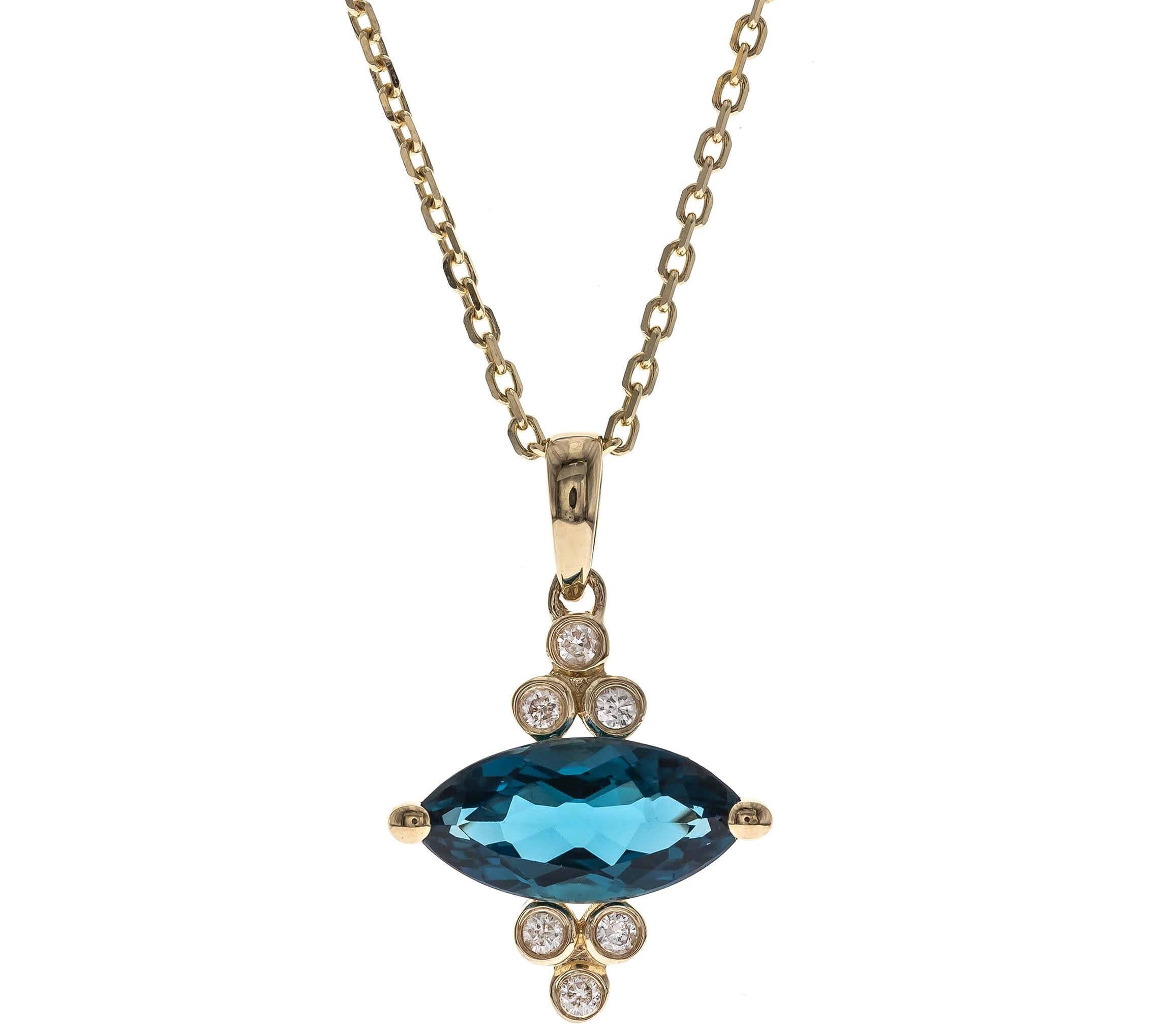 Hadley 14K Yellow Gold Marquise-Cut Brazilian London Blue Topaz Pendant