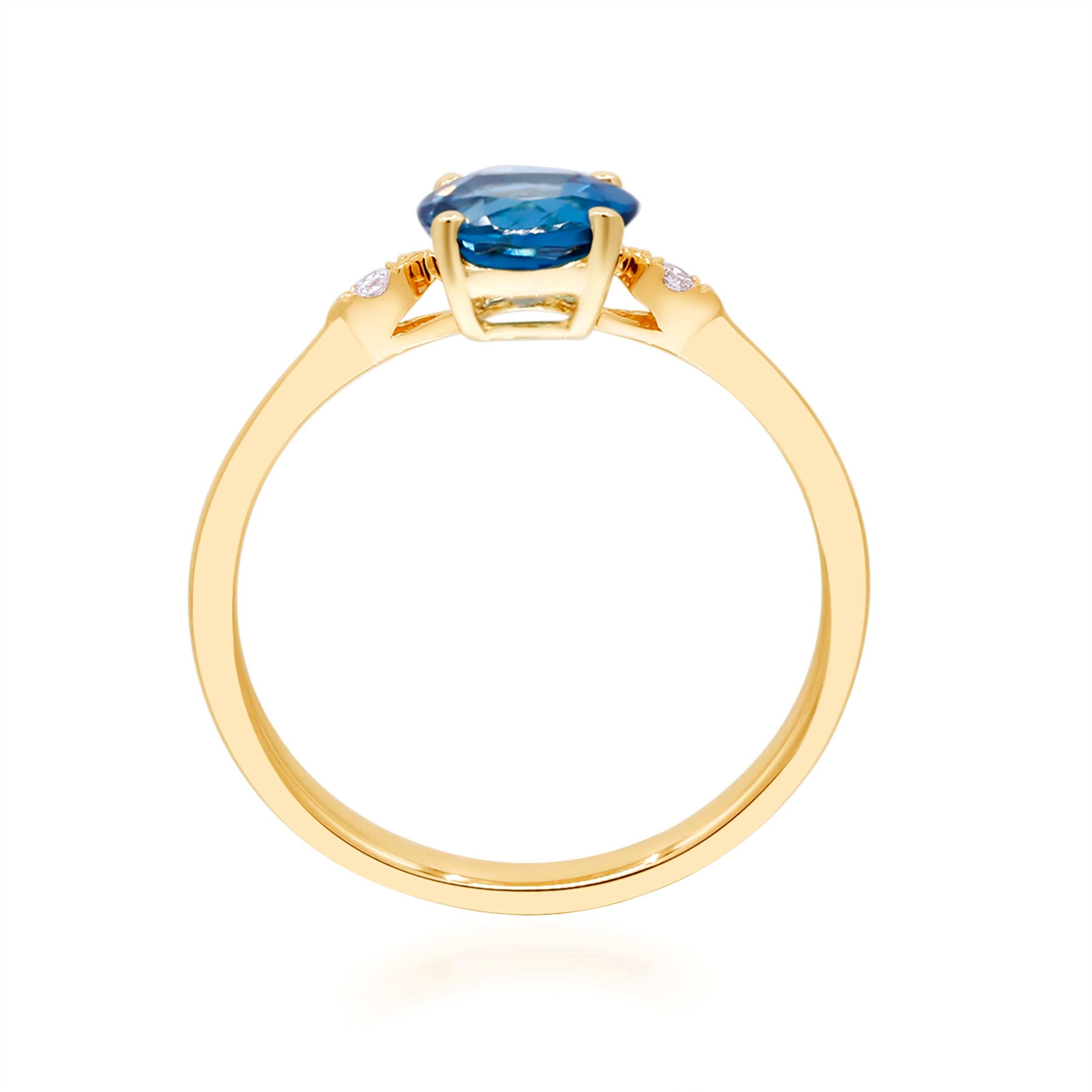 Decorate yourself in elegance with this Ring is crafted from 10K Yellow Gold by Gin & Grace. This Ring is made up of Round-cut London Blue Topaz (1 Pcs) 1.04 carat and round-cut white diamond (2 pcs) 0.02 carat. This Ring is weight 1.32 grams. This delicate Ring is polished to a high finish shine.