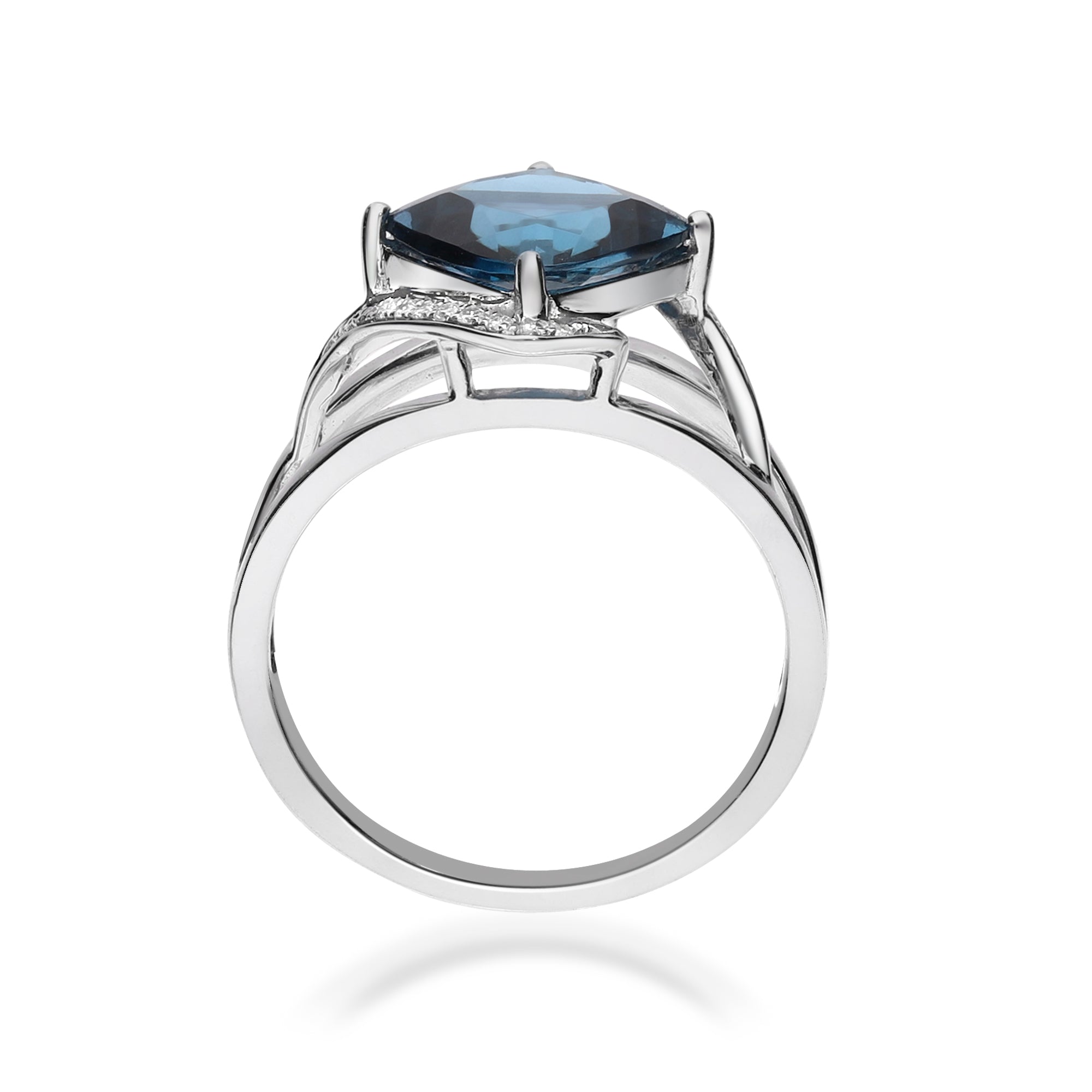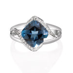 Stunning, timeless and classy eternity Unique ring. Decorate yourself in luxury with this Gin & Grace ring. The 10k White Gold jewelry boasts Cushion-Cut Prong Setting Genuine London Blue topaz (1pcs) 3.52 Carat and Round-Cut Prong Setting Diamond (18 pcs) 0.07 Carat accent stones for a lovely design. This ring is weight 2.96 grams. Crafted with 10k White Gold, this delicate Ring is polished to a high finish shine.