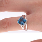 Isabella 10K White Gold Cushion-Cut London Blue Topaz Ring