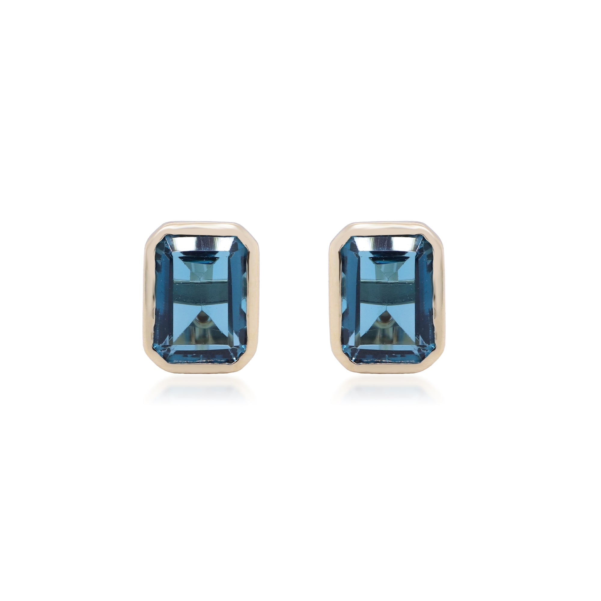 Decorate yourself in elegance with this Earring is crafted from 10-karat Yellow Gold by Gin & Grace. This Earring is made up of Emerald-cut Brazilian London Blue Topaz (2 Pcs) 2.30 carat. This Earring is weight 1.38 grams. This delicate Earring is polished to a high finish shine.