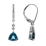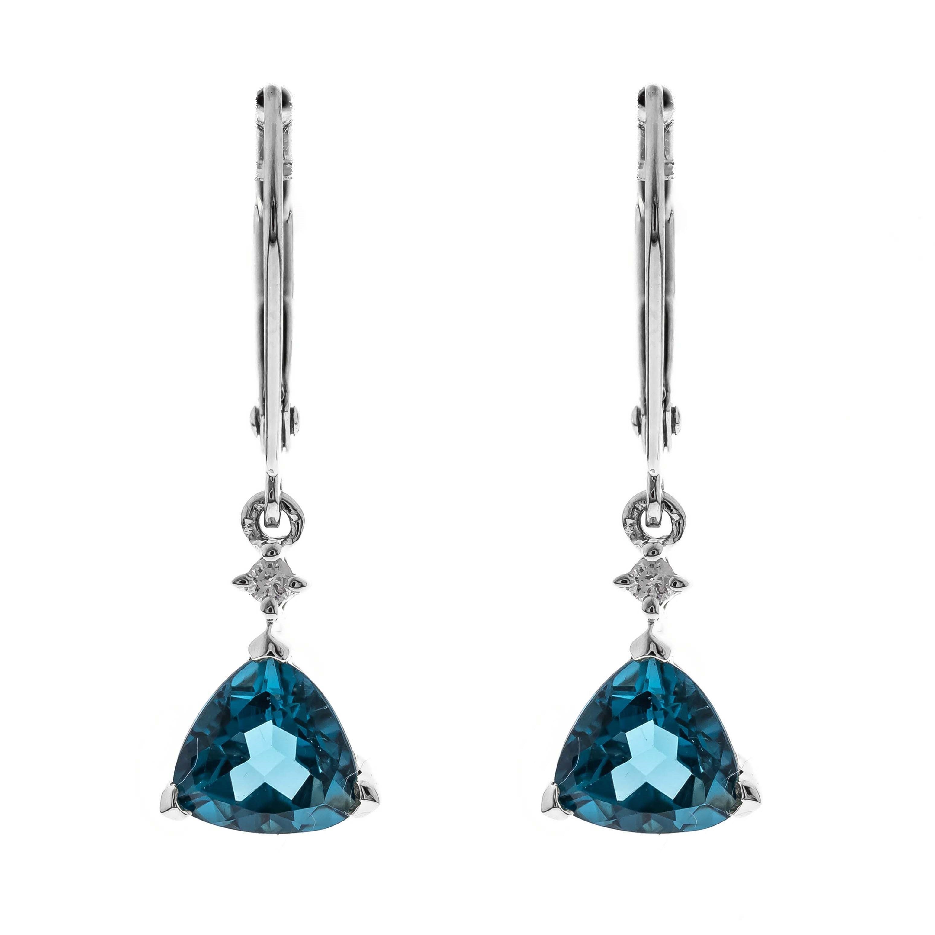 Decorate yourself in elegance with this Earring is crafted from 14-karat White Gold by Gin & Grace. This Earring is made up of 6 Brazilian London Blue Topaz trillion-cut (2 pcs) 1.73 carat, Round-cut White Diamond (2 Pcs) 0.03 Carat. This Earring is weight 1.24 grams. This delicate Earring polished to a high finish shine.