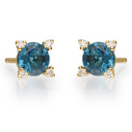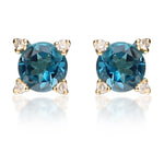 Decorate yourself in elegance with this Earring is crafted from 14K Yellow Gold by Gin & Grace. This Earring is made up of 7 Brazilian London Blue topaz Round-cut (2 pcs) 1.15 carat, Round-cut White Diamond (8 Pcs) 0.04 Carat. This Earring is weight 0.90 grams. This delicate Earring polished to a high finish shine.