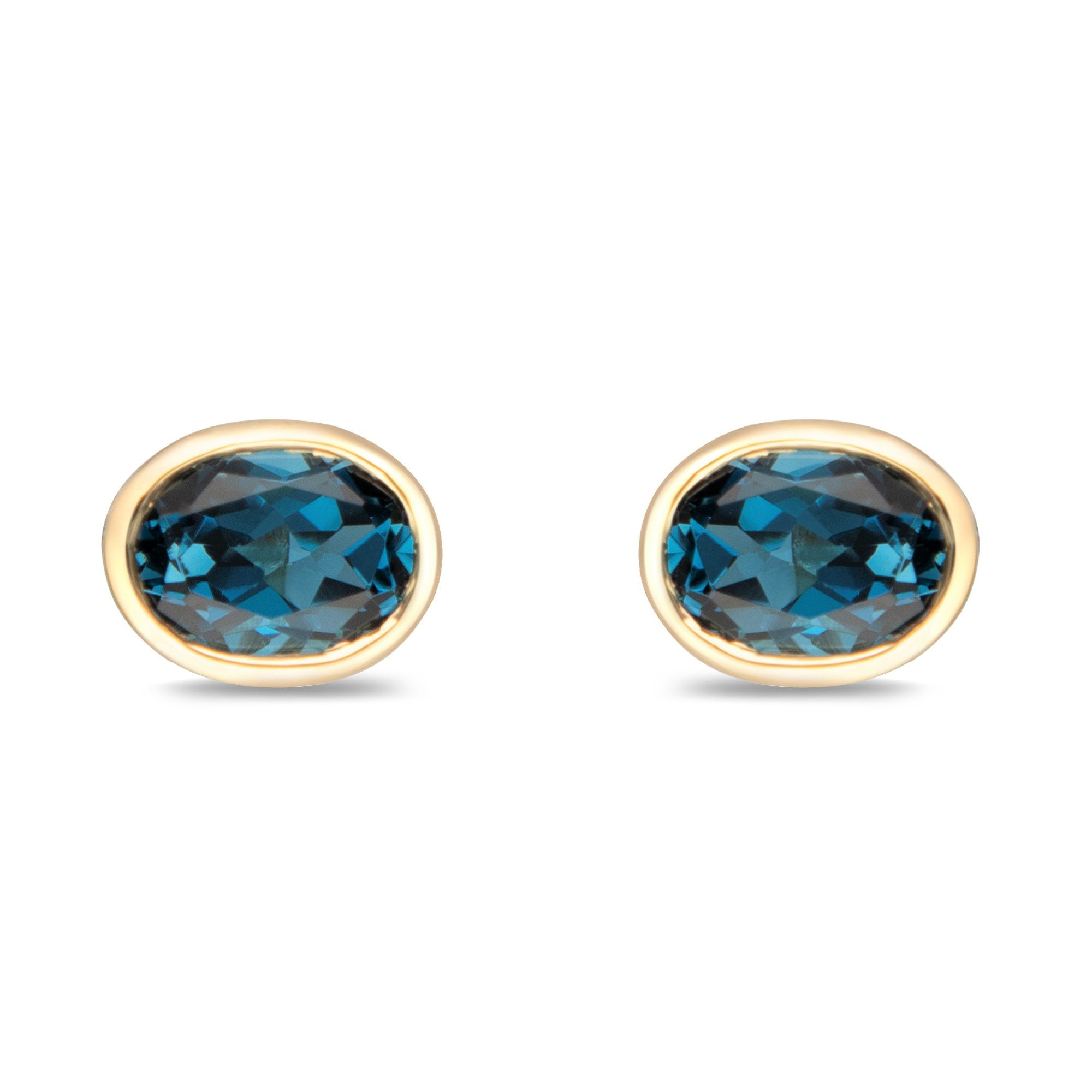 Decorate yourself in elegance with this Earring is crafted from 10K Yellow Gold by Gin & Grace Earring. This Earring is made up of Oval-Cut Brazilian London Blue Topaz (2 pcs) 3.13 carat. This Earring is weight 1.77 grams. This delicate Earring is polished to a high finish shine.