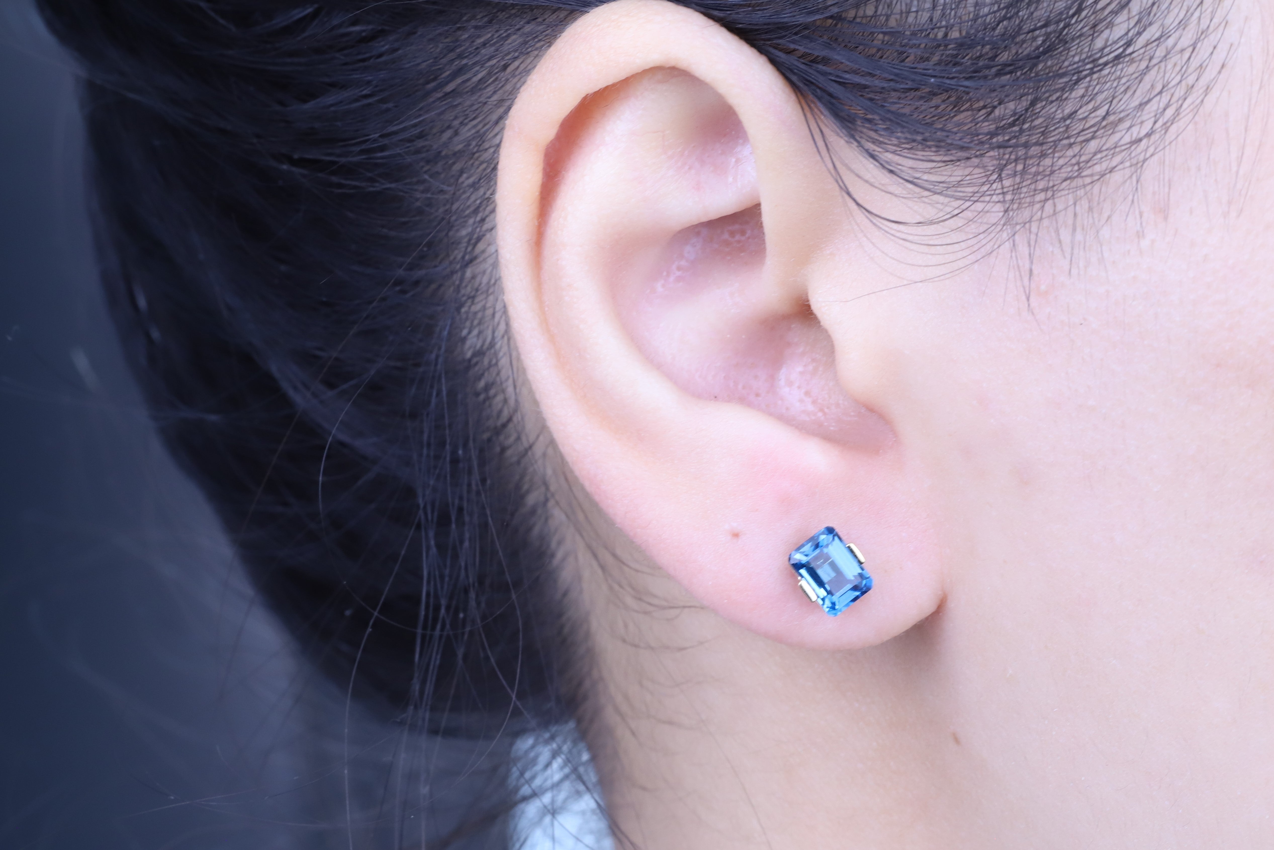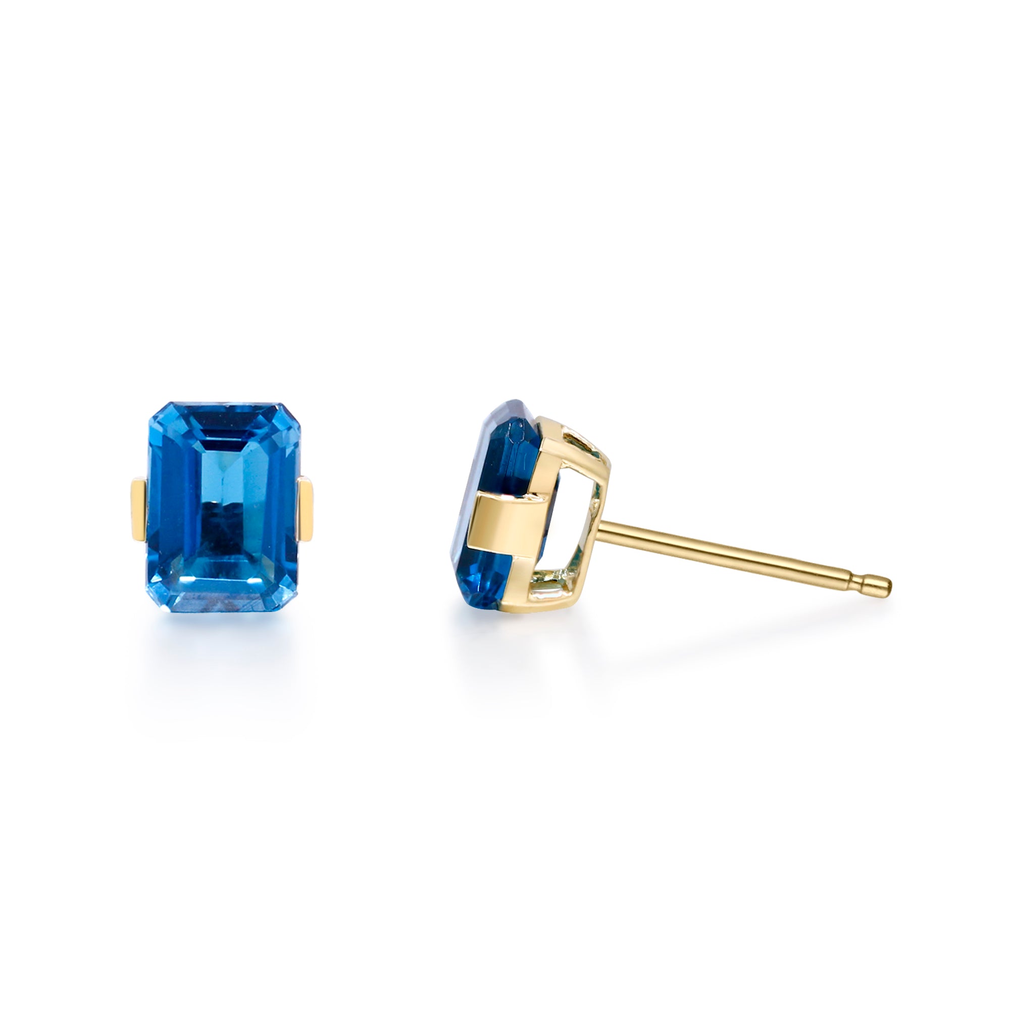 Decorate yourself in elegance with this Earring is crafted from 10-karat Yellow Gold by Gin & Grace Earring. This Earring is made up of 7x5 mm Emerald-Cut Brazilian London Blue Topaz (2 pcs) 2.44 carat. This Earring is weight 0.82 grams. This delicate Earring is polished to a high finish shine.