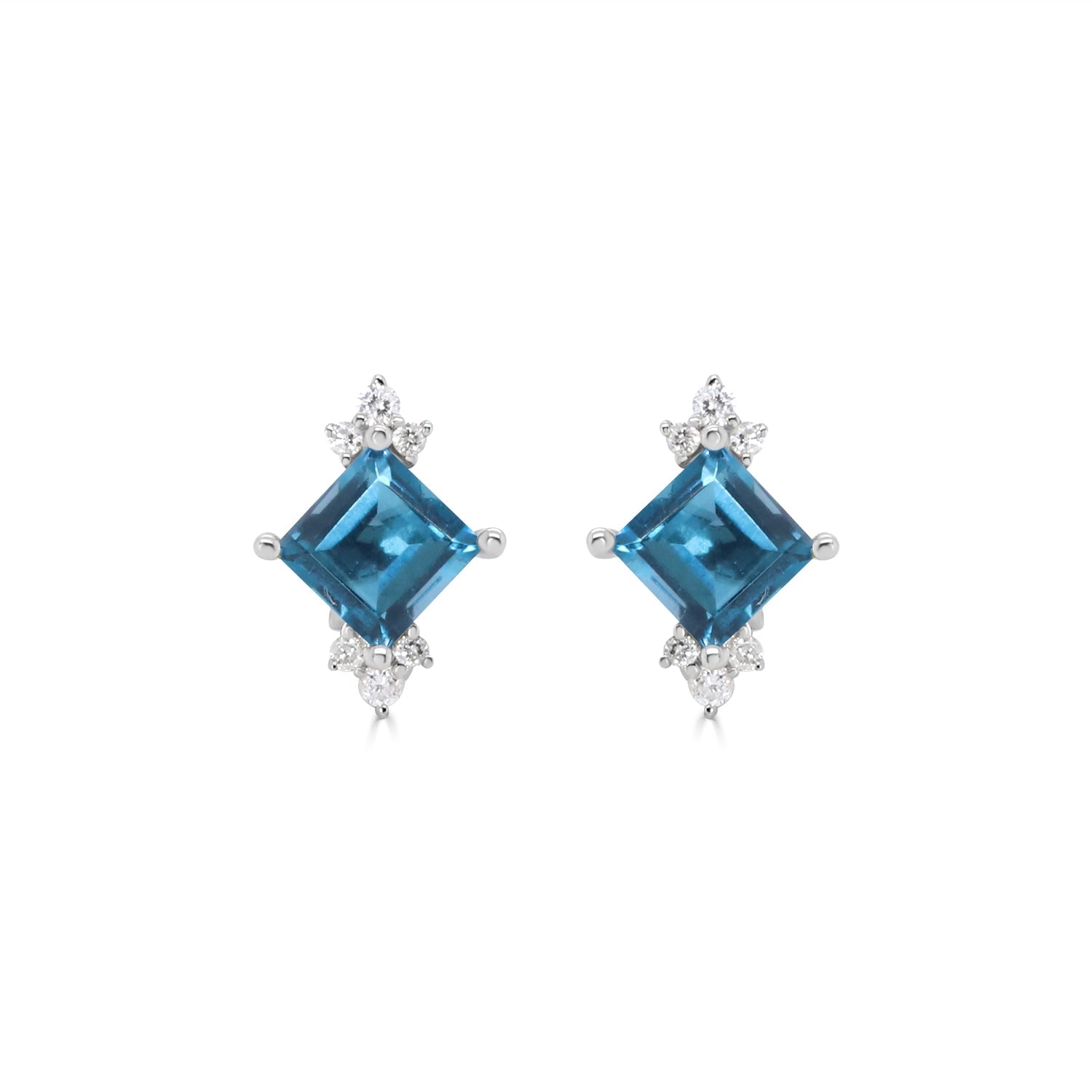 Decorate yourself in elegance with this Earrings is crafted from 10-karat White Gold by Gin & Grace. This Earrings is made up of Square-cut Brazilian London Blue Topaz (2 pcs) 1.70 carat and Round-cut White Diamond (12 Pcs) 0.11 Carat. This Earrings is weight 1.22 grams. This delicate Earrings is polished to a high finish shine.