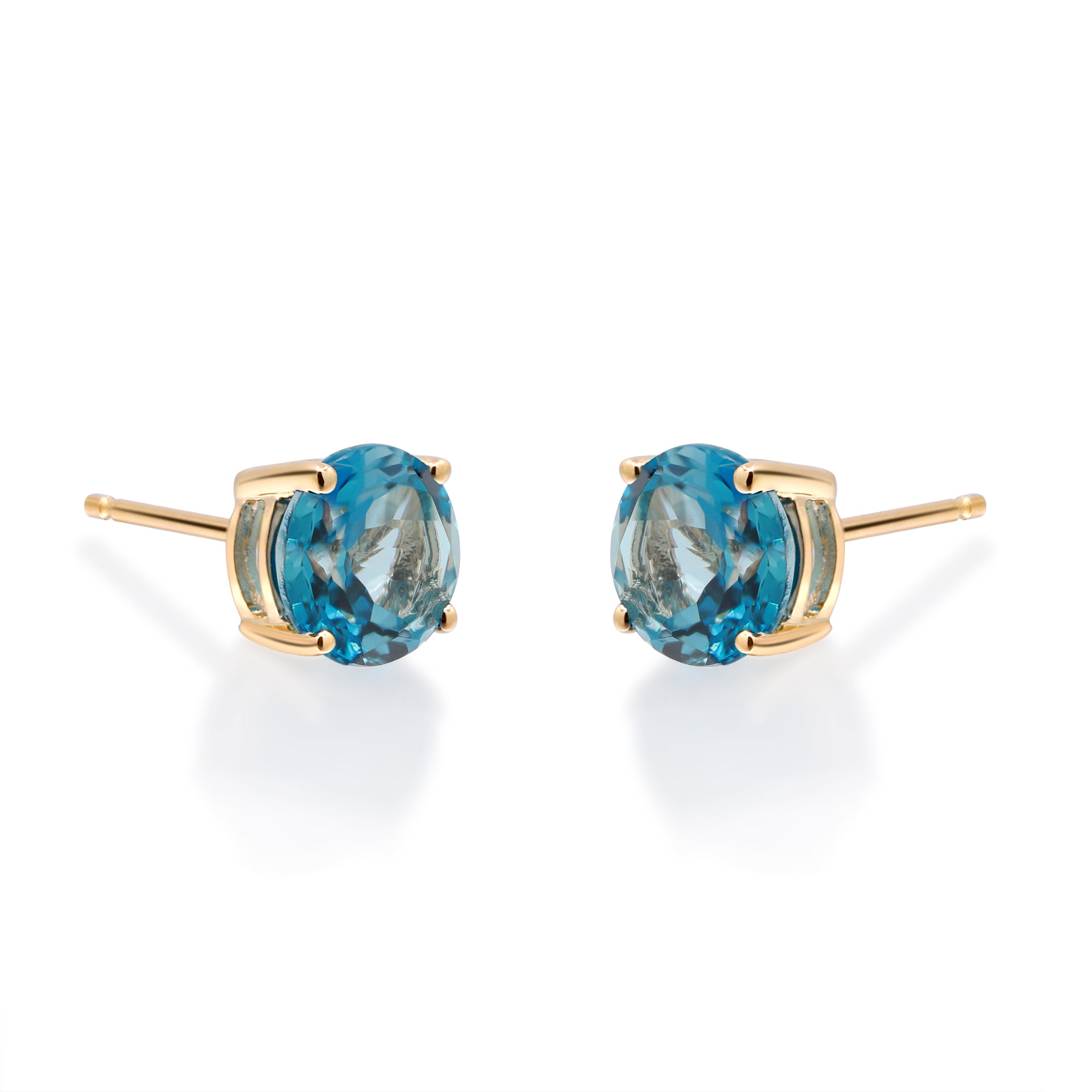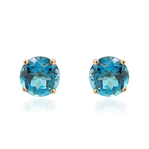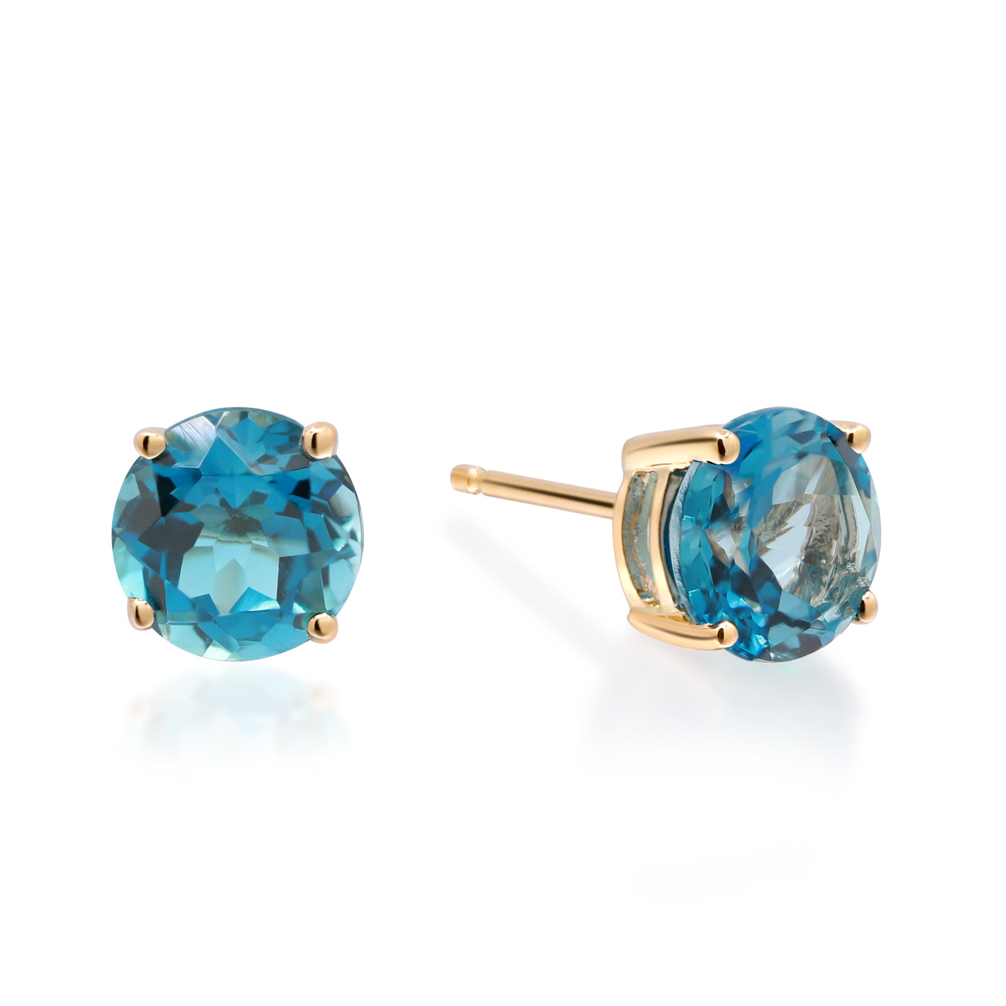 Decorate yourself in elegance with this Earring is crafted from 14-karat Yellow Gold by Gin & Grace Earring. It creates a contemporary look with these sparkling Brazilian London Blue Topaz stud earrings. This Earring is made up of 7MM Round-Cut Prong setting Brazilian London Blue Topaz (2pcs) 3.16 Carat. This Earring is weight 1.60 grams. This delicate Earring is polished to a high finish shine. Simple Stud clasps keep these earrings securely fastened.