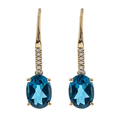 Decorate yourself in elegance with this Earring is crafted from 14K Yellow Gold by Gin & Grace Earring. The jewelry boasts 6X8 mm Oval-Cut prong setting Brazilian London Blue Topaz (2 pcs) 3.19 Carat and Round-Cut prong setting Diamond (12 pcs) 0.06 Carat. This Earring is weight 1.57 grams. This delicate Earring is polished to a high finish shine. Simple lever back clasps keep these earrings securely fastened.