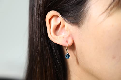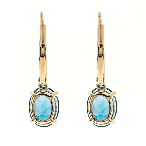 Decorate yourself in elegance with this Earring is crafted from 14K Yellow Gold by Gin & Grace Earring. The jewelry boasts 6X8 mm Oval-Cut prong setting Brazilian London Blue Topaz (2 pcs) 3.19 Carat and Round-Cut prong setting Diamond (12 pcs) 0.06 Carat. This Earring is weight 1.57 grams. This delicate Earring is polished to a high finish shine. Simple lever back clasps keep these earrings securely fastened.