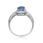 Decorate yourself in elegance with this Ring is crafted from 14-karat white Gold by Gin & Grace. This Ring is made up of 6*8 Cushion-Cut Brazilian London Blue Topaz (1 Pcs) 1.66 carat and round-cut and White diamond (46 pcs) 0.19 carat. This Ring is weight 2.21 grams. This delicate Ring is polished to a high finish shine.