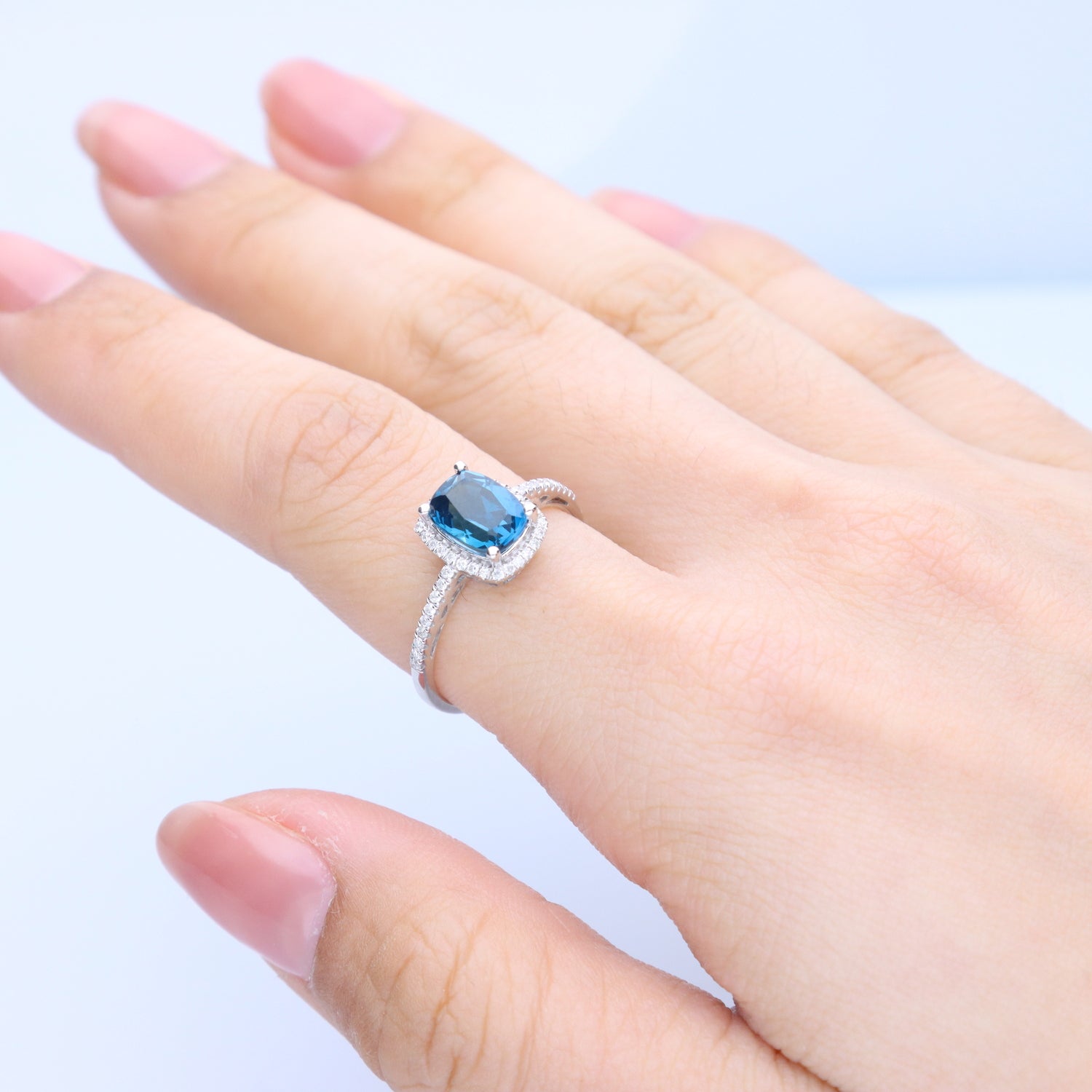 Alba 14K White Gold Cushion-Cut Brazilian London Blue Topaz Ring