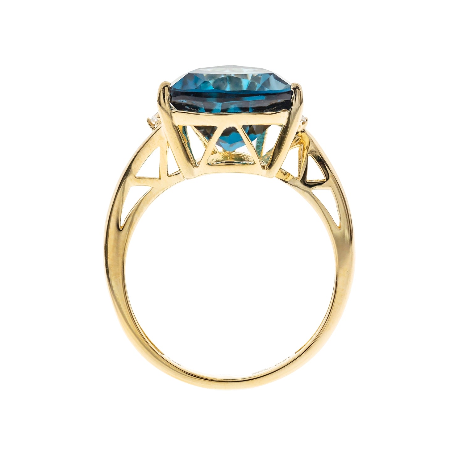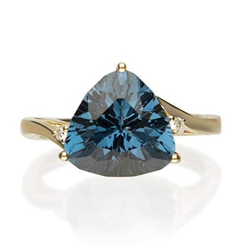 Stunning, timeless and classy eternity Unique ring. Decorate yourself in luxury with this Gin & Grace ring. The 14k Yellow Gold jewelry boasts Trillion-Cut Prong Setting Genuine Brazilian London Blue Topaz (1 pcs) 5.04 Carat, Natural White Round cut Diamond (2 Pcs) 0.03 Carat accent stones for a lovely design. This ring is weight 2.79 grams. Crafted with 14k Yellow Gold, this delicate Ring is polished to a high finish shine.