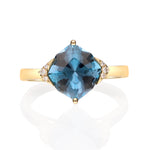 Kennedi 14K Yellow Gold Cushion-Cut Brazilian London Blue Topaz Ring