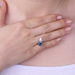 Decorate yourself in elegance with this Pendant is crafted from 10-karat White Gold by Gin & Grace Pendant. This Pendant is made up of 7MM Cushion-cut Prong setting Brazilian London Blue Topaz (1 Pcs) 1.90 Carat, Mother of Pearl Pink Free (1 pcs) 0.30 carat and Round-Cut Prong setting White Diamond (3 Pcs) 0.05 Carat. This Pendant is weight 1.02 grams. The gorgeous Pendant hangs from a 18-inch wheat chain. This delicate Pendant is polished to a high finish shine.