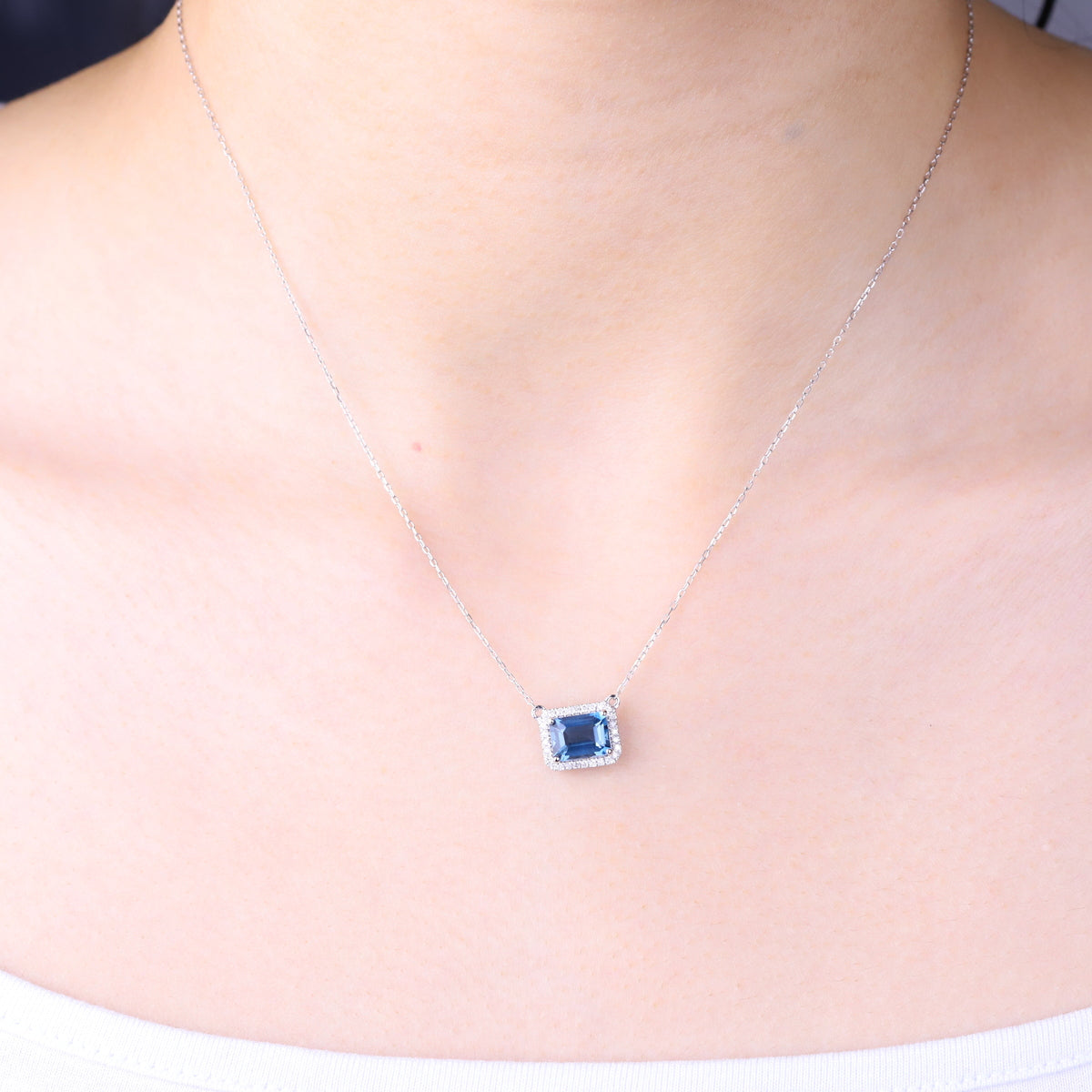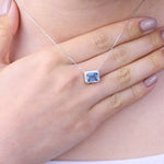 Clara 14K White Gold Emerald-Cut Brazilian London Blue Topaz Pendant