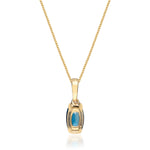 Decorate yourself in elegance with this Pendant is crafted from 14-karat Yellow Gold by Gin & Grace Pendant. This Pendant is made up of 7x5 mm Cushion-Cut Prong setting Brazilian London Blue Topaz (1 Pcs) 1.07 Carat and Round-Cut Prong setting White Diamond (5 Pcs) 0.05 Carat. This Pendant is weight 0.66 grams. The gorgeous Pendant hangs from a 18-inch wheat chain. This delicate Pendant is polished to a high finish shine.