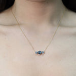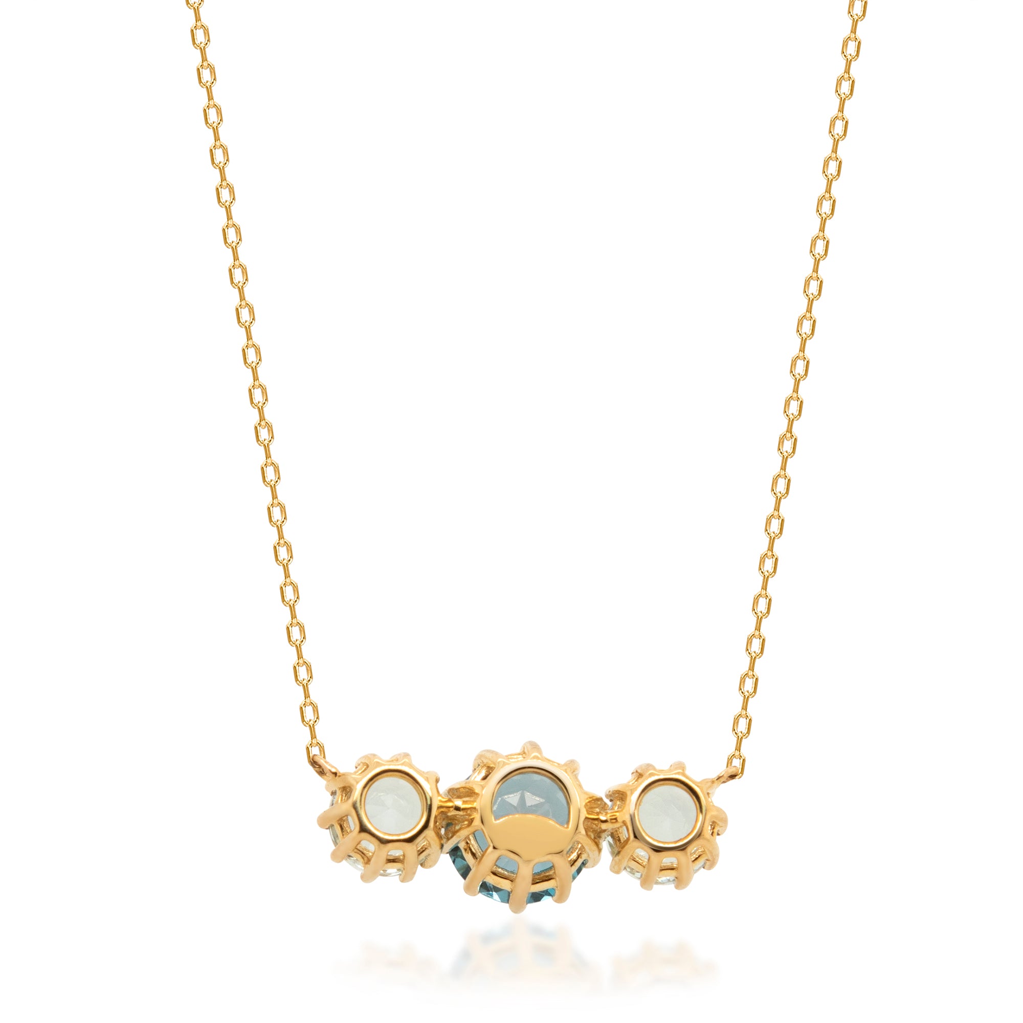 Decorate yourself in elegance with this Pendant is crafted from 10-karat Yellow Gold by Gin & Grace Pendant. This Pendant is made up of Round-Cut Prong setting Genuine Brazilian London Blue Topaz (1 Pcs) 1.36 Carat and Round-Cut Prong setting Genuine Aquamarine (2 pcs) 0.90 Carat. This Pendant is weight 1.69 grams. The gorgeous Pendant hangs from a 18-inch wheat chain. This delicate Pendant is polished to a high finish shine.