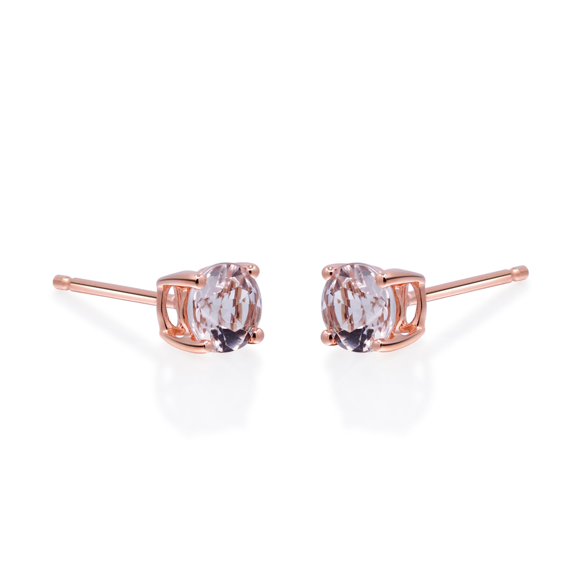 Decorate yourself in elegance with this Earring is crafted from 10-karat rose Gold by Gin & Grace. This Earring is made up of 5.0 Madagascar Morganite round shaped (2 pcs) 0.92 carat. This Earring is weight 0.75 grams. This delicate Earring is polished to a high finish shine.