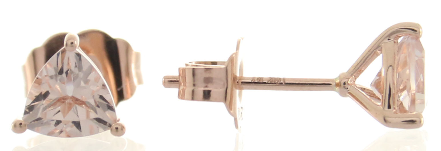 Decorate yourself in elegance with this Earring is crafted from 10K Rose Gold by Gin & Grace. This Earring is made up of Trillion-Cut Morganite (2 Pcs) 0.76 carat. This Earring is weight 0.68 grams. This delicate Earring is polished to a high finish shine.