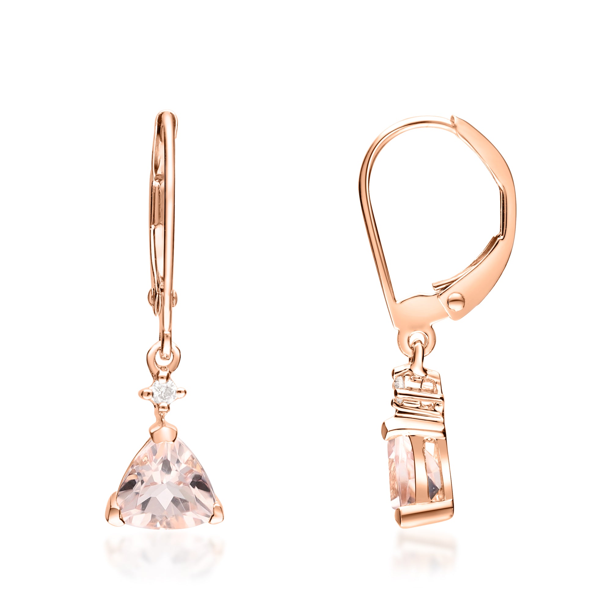 Stunning, timeless and classy eternity Unique Earring. Decorate yourself in luxury with this Gin & Grace Earring. This Earring is made up of Trillion-Cut Prong Setting Genuine Madagascar Morganite (2 pcs) 1.39 Carat and Round-Cut Prong Setting Diamond (2 pcs) 0.03 Carat accent stones for a lovely design. This Earring is weight 1.12 grams. The Earring is crafted of shining 10-karat Rose Gold and is completed by a highly polished finish.