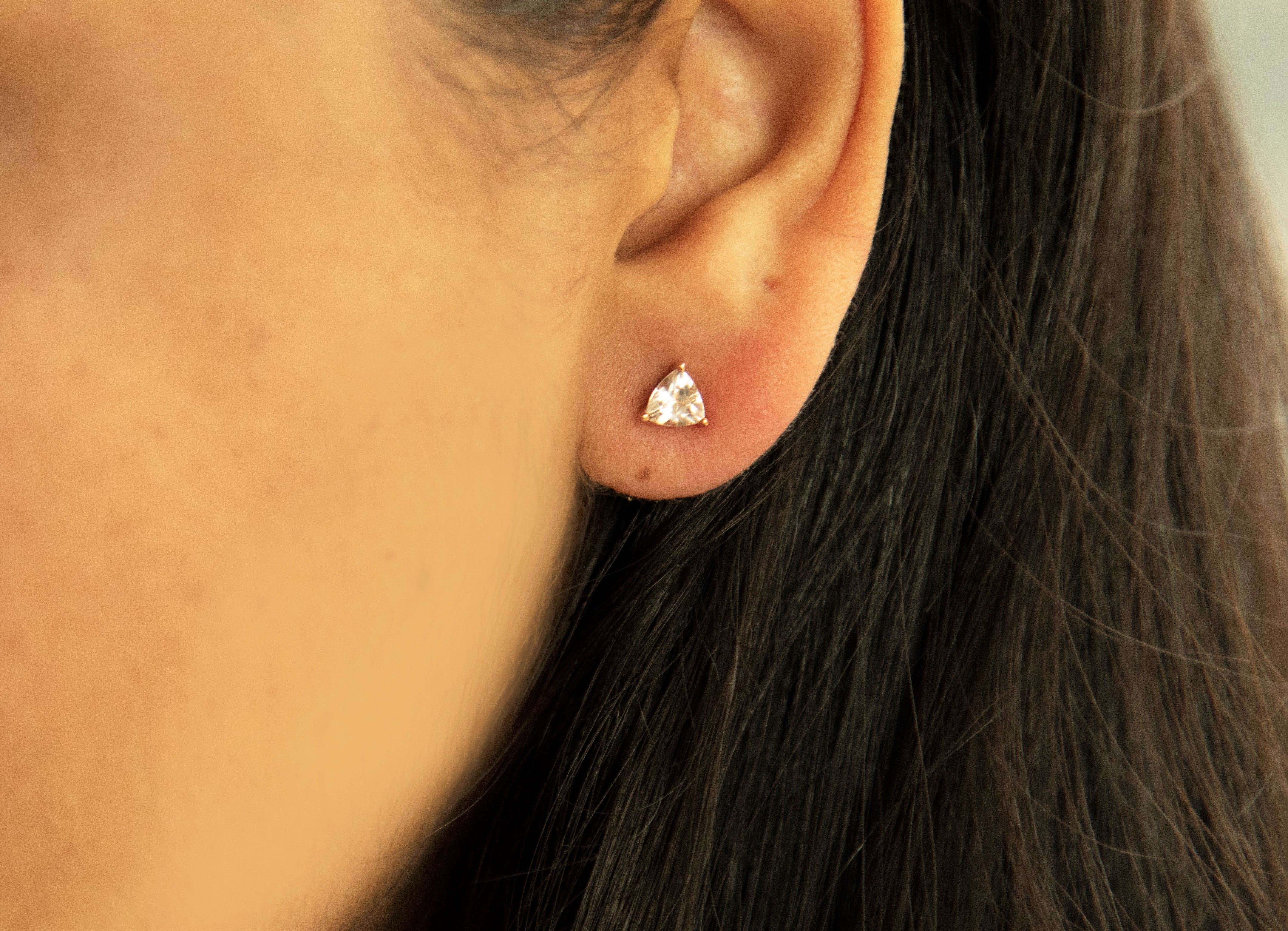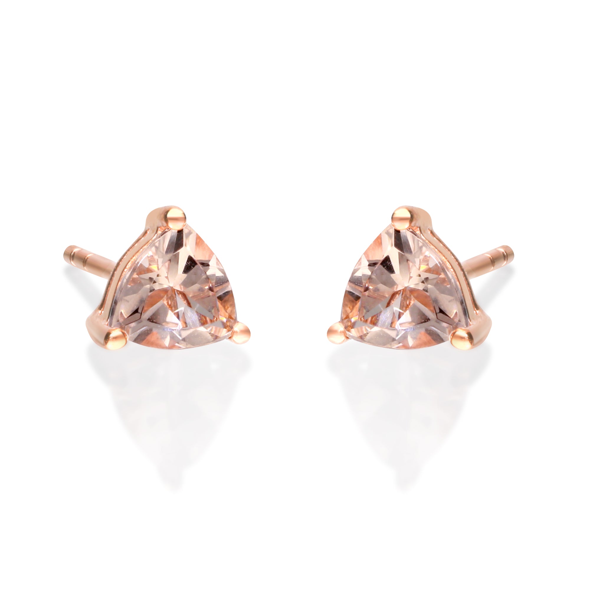 Decorate yourself in elegance with this Gin & Grace pair of earrings. The jewelry boasts round-cut Madagascar Morganite stones for a glamorous design. Style: Stud Gemstone colors: Pink Gemstone shapes: Trillion Two prong-set Trillion-cut Madagascar Morganite each measure 5 MM Gemstone weight: 0.71 Carats Total gemstone weight: 0.71 Carats Metal: 14K rose gold Finish: High polish Clasp: Butterfly Metal weight: 0.72 Grams Earring dimensions: 9 Mm wide x 10 mm long9