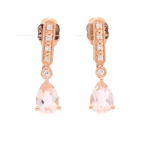 Decorate yourself in elegance with this Earring is crafted from 10-karat Rose Gold by Gin & Grace Earring. The jewelry boasts Pear-Cut prong setting Genuine Morganite (2pcs) 1.20 Carat and Round-Cut prong setting Natural Diamond (10pcs) 0.07 Carat. This Earring is weight 1.40 grams. This delicate Earring is polished to a high finish shine. This jewelry is sure to offer an elegant look to any outfit and any occasion.