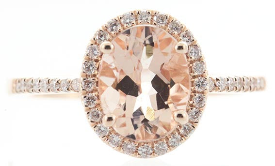 Decorate yourself in elegance with this Ring is crafted from 10-karat Rose Gold by Gin & Grace. This Ring is made up Oval-Cut Madagascar Morganite (1 pcs) 1.52 carat and Round-cut White Diamond (40 Pcs) 0.23 Carat. This Ring is weight 2.62 grams. This delicate Ring is polished to a high finish shine.