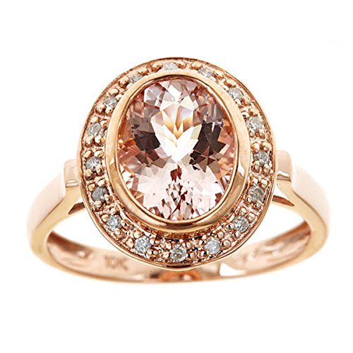 This gorgeous 10-karat rose gold ring has a stunning oval-cut morganite center stone that pops off the band. The center stone is lined with 16 round-cut Gin& Grace Natural diamonds and is highly polished to make this necklace sparkle around your finger. Gemstone colors: Pink Gemstone shapes: Oval One bezel-set oval-cut Genuine Madagascar Morganite measuring 8 mm wide and 11 mm long Gemstone weight: 2 2/8 carats Diamonds: 16 Diamond cut: Natural Round Diamond measurements: 1 mm Diamond weight: 1/10 carats Color: G-H Clarity: I1-I2 Setting: Prong Metal: 10k rose gold Finish: High polish Metal weight: 2.41 grams Ring setting dimensions: 15 mm wide x 15 mm long Band dimensions: 2mm wide