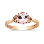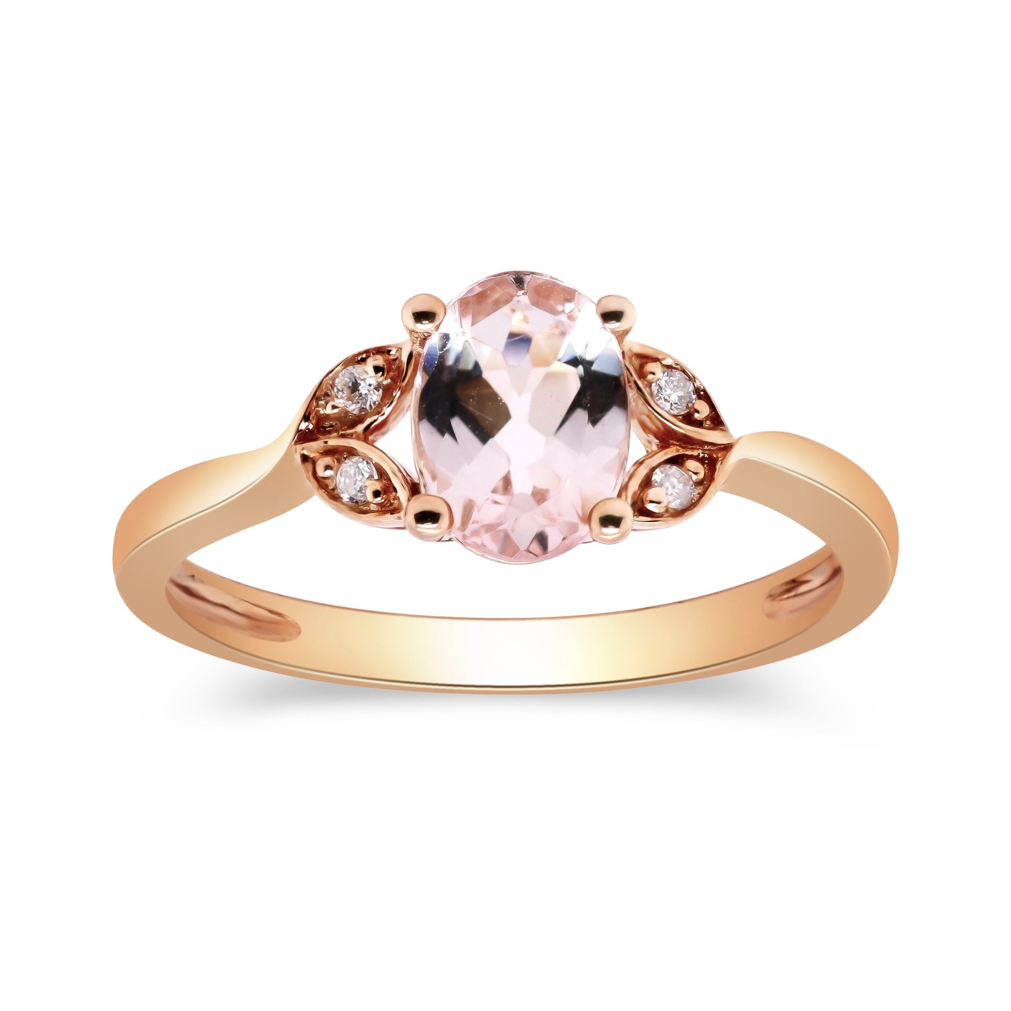 Stand out with this stunning ring, beautifully crafted of 10-karat rose gold and set with genuine Genuine Madagascar Morganite and Gin & Grace Natural diamonds. A high polish finish completes the ring with a radiant shine. Jewelry Type: Fine Gender: Female Gemstone colors: Pink Gemstone shapes: Oval One prong-set oval-cut Genuine Madagascar Morganite measures 5 mm wide x 7 mm long Gemstone weight: 0.76 carats Total gemstone weight: 0.76 carats Diamonds: Four Diamond cut: Round Diamond measurements: 1 mm Diamond weight: 0.03 carat Color: G-H Clarity: I1-I2 Setting: Prong Metal: 10k rose gold Finish: High polish Metal weight: 1.88 grams Ring setting dimensions: 19 mm wide x 23 mm long x 5 mm deep Band dimensions: 2 mm wide