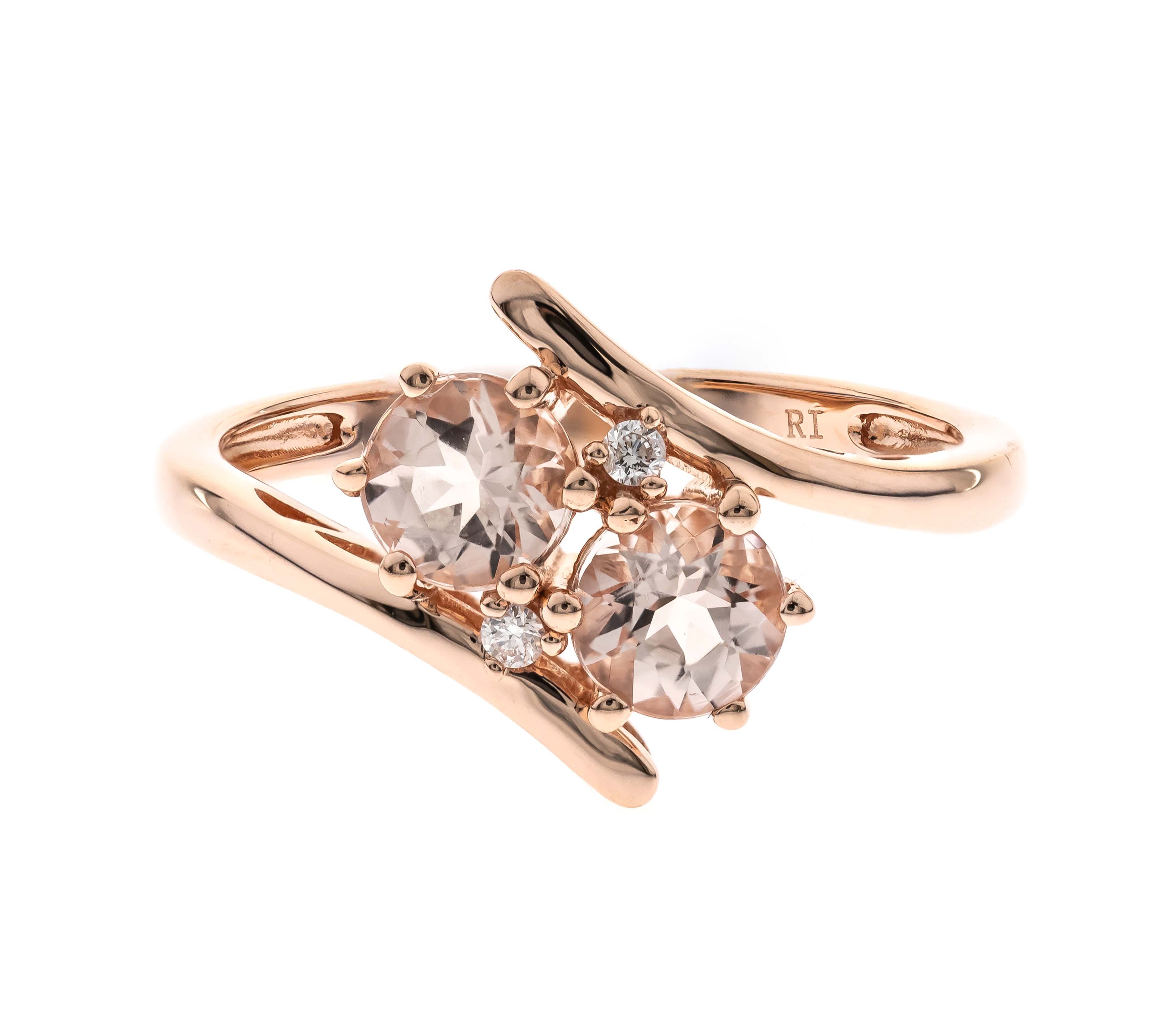 Navy 14K Rose Gold Round-Cut Madagascar Morganite Ring