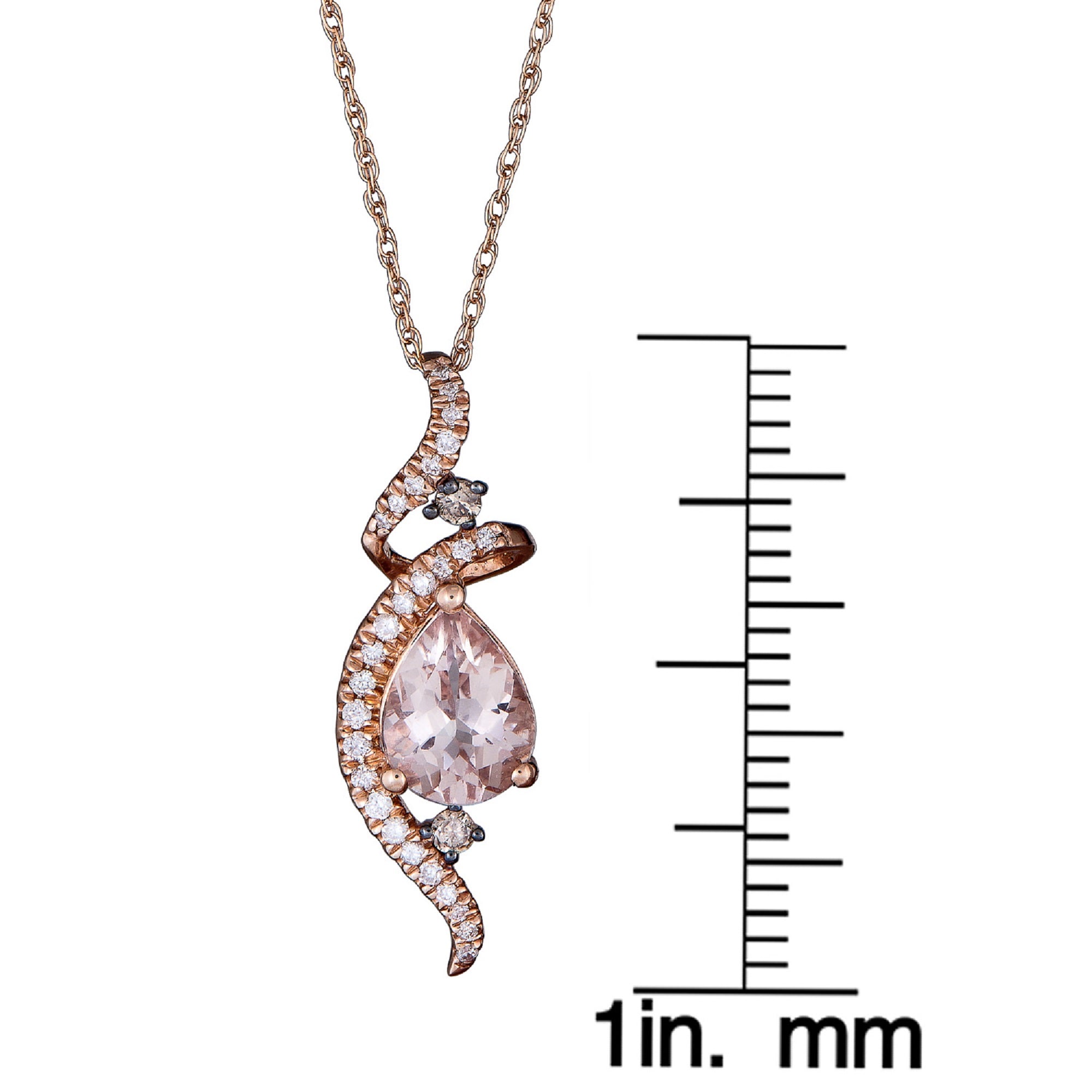 Decorate yourself in elegance with this Pendant is crafted from 10-karat Rose Gold by Gin & Grace Pendant. This Pendant is made up of 6X8 mm Pear-Cut Prong setting Genuine Madagascar Morganite (1 Pcs) 0.90 Carat and Round-Cut Prong setting Natural Brown Diamond (2 Pcs) 0.05 Carat and Round-Cut Prong setting Natural White Diamond (27 Pcs) 0.11 Carat. This Pendant is weight 1.0 grams. The gorgeous Pendant hangs from a 18-inch wheat chain. This delicate Pendant is polished to a high finish shine