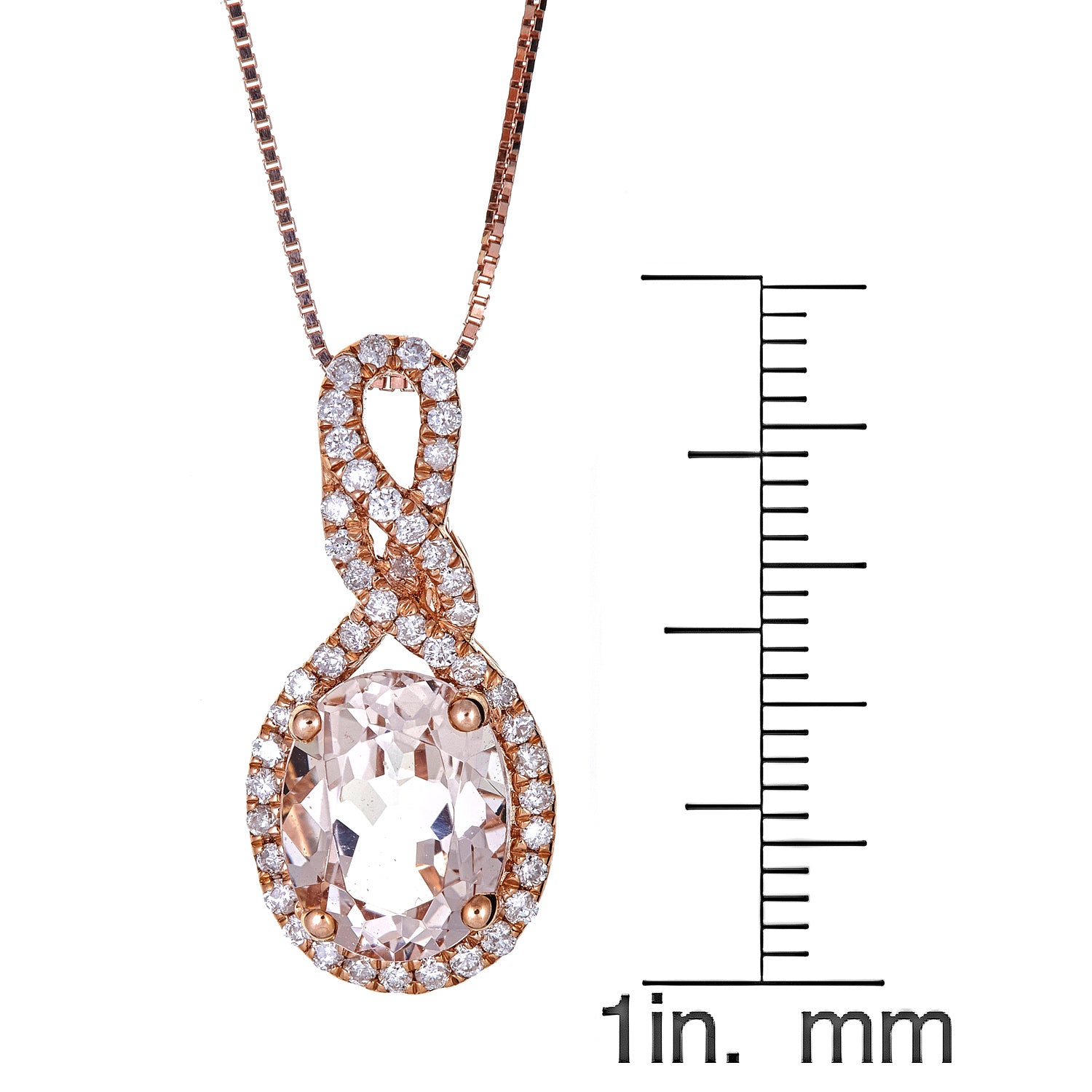A huge Gin & Grace Madagascar Morganite gemstone is set in the center of this beautiful pendant and diamonds are encrusted along the face for an elegant and sophisticated look. The 14k rose gold is glossy for an eye-catching shine. Style: Pendant Gemstone colors: Pink Gemstone shapes: Oval-cut One prong-set Oval-cut measure Genuine Madagascar Morganite 7 mm wide x 9 mm long Gemstone weight: 1 3/4 Carat Total gemstone weight: 1 3/4 Carat Diamonds:46 Diamond cut: Round-cut measure 1 mm Diamond weight: 1/4 Carat Color: G-H Clarity: I1-I2 Setting: Prong-set Metal: 14K Rose gold Finish: High Polish Chain: Box Chain length: 1 mm wide x 18 mm inches long Clasp: Spring Pendant Metal weight: 1.5 GM Pendant dimensions: 9 mm wide x 15 mm long x 4 mm deep.