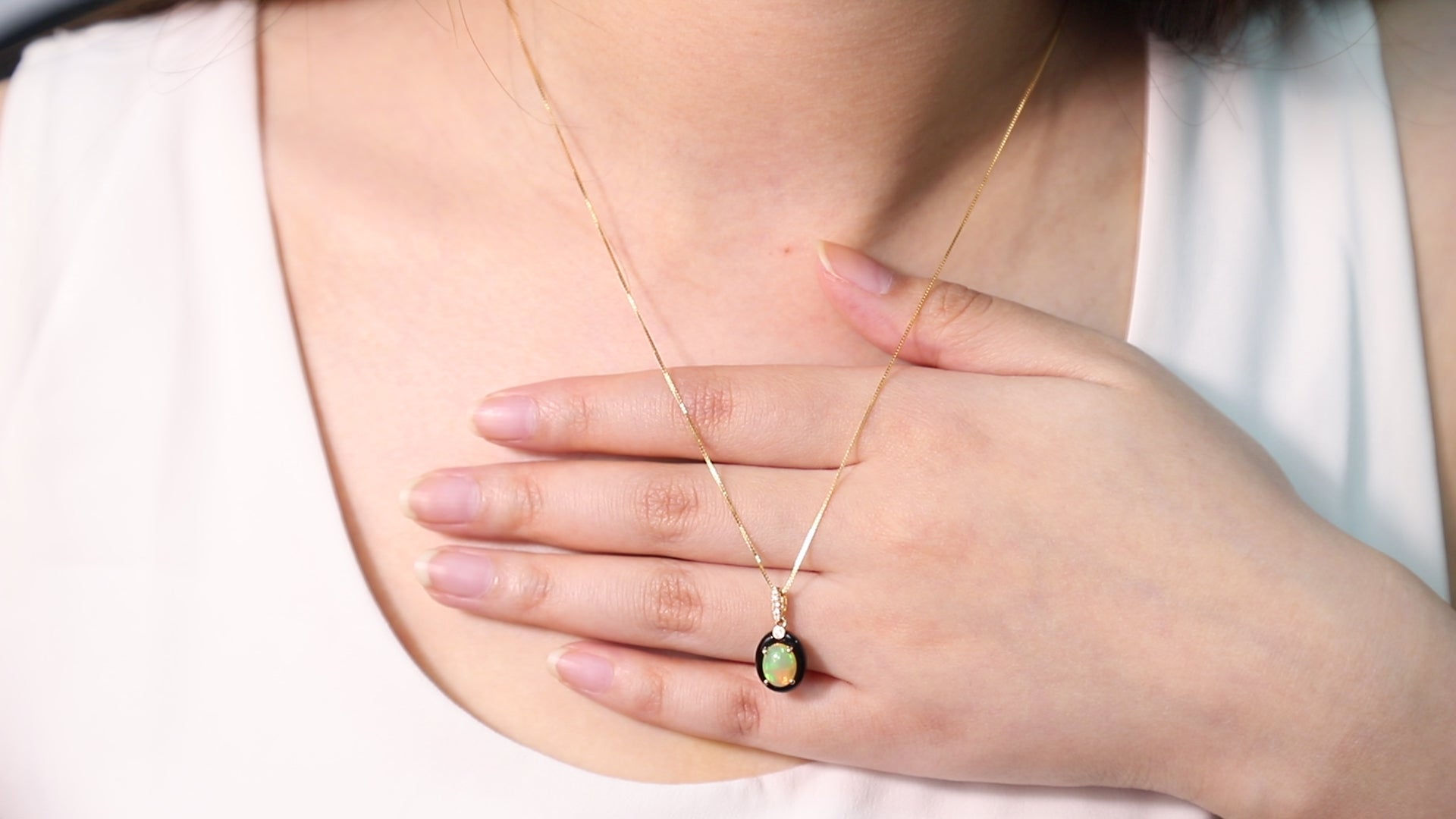 Adalynn 10K Yellow Gold Oval-Cut Natural African Opal Pendant