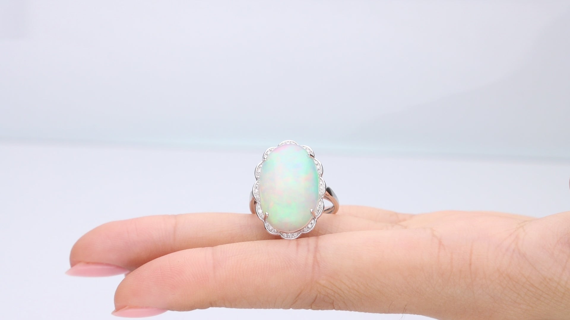 Vida 10K White Gold Oval-Cut African Opal Ring