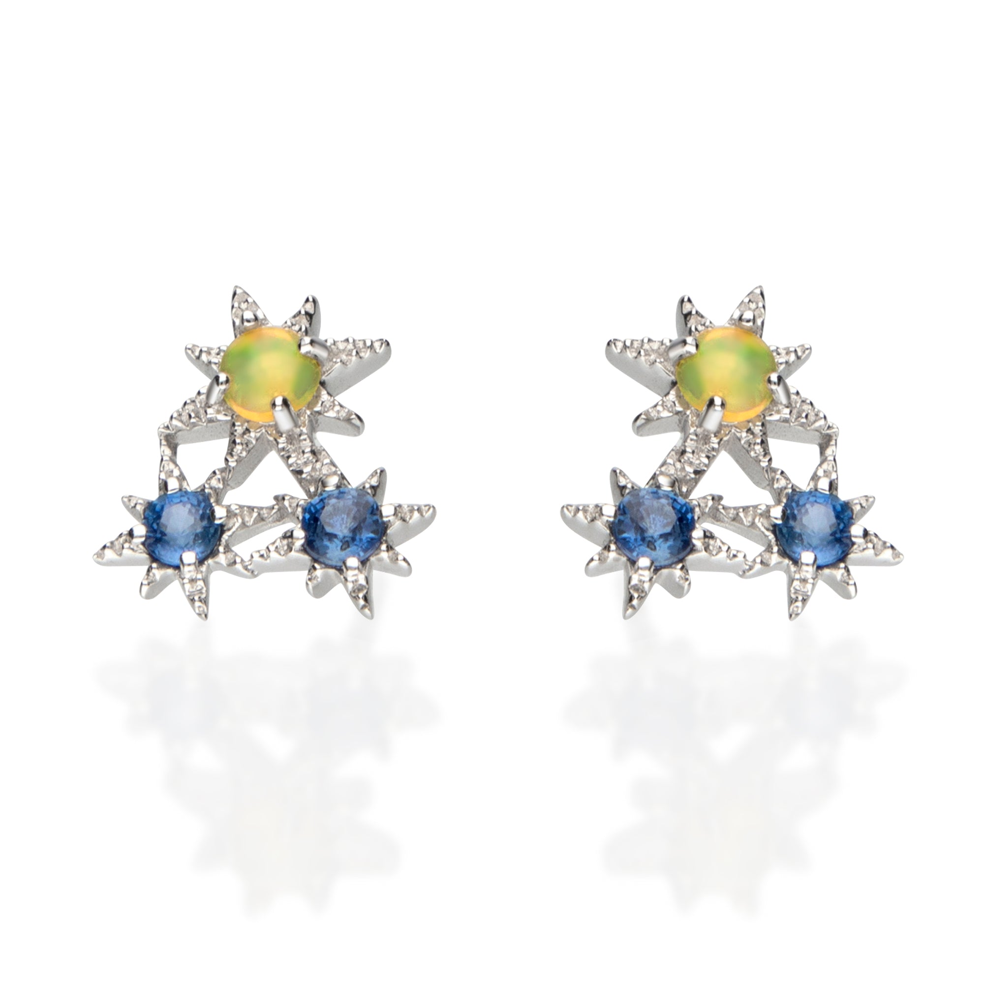 Alayna 14K White Gold Round-Cut Natural African Opal Earring