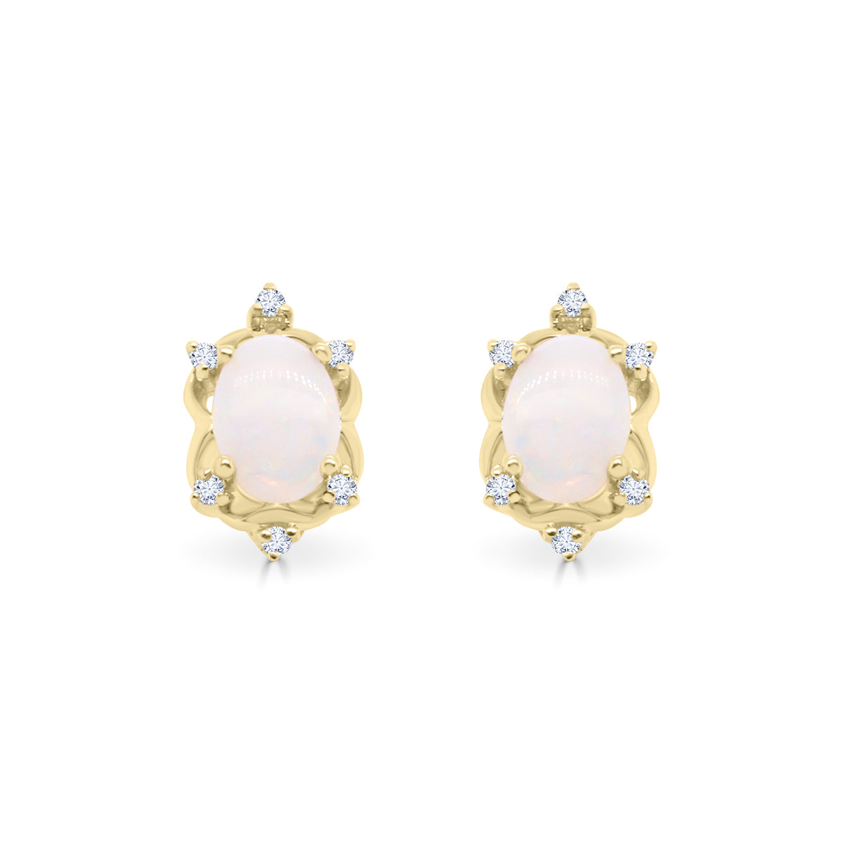 Decorate yourself in elegance with this Earring is crafted from 10-karat White Gold by Gin & Grace. This Earring is made up of Oval-Shape African Opal (2 pcs) 0.78 carat and Round-cut Diamond (12 pcs) 0.10 Carat. This Earring is weight 1.71 grams. This delicate Earring is polished to a high finish shine.