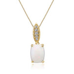 Decorate yourself in elegance with this Pendant is crafted from 14-karat Yellow Gold by Gin & Grace Pendant. This Pendant is made up of 8x6 mm Oval-Cut Prong setting African Opal (1 Pcs) 0.95 Carat and Round-Cut Prong setting White Diamond (6 Pcs) 0.05 Carat. This Pendant is weight 0.75 grams. The gorgeous Pendant hangs from a 18-inch wheat chain. This delicate Pendant is polished to a high finish shine.