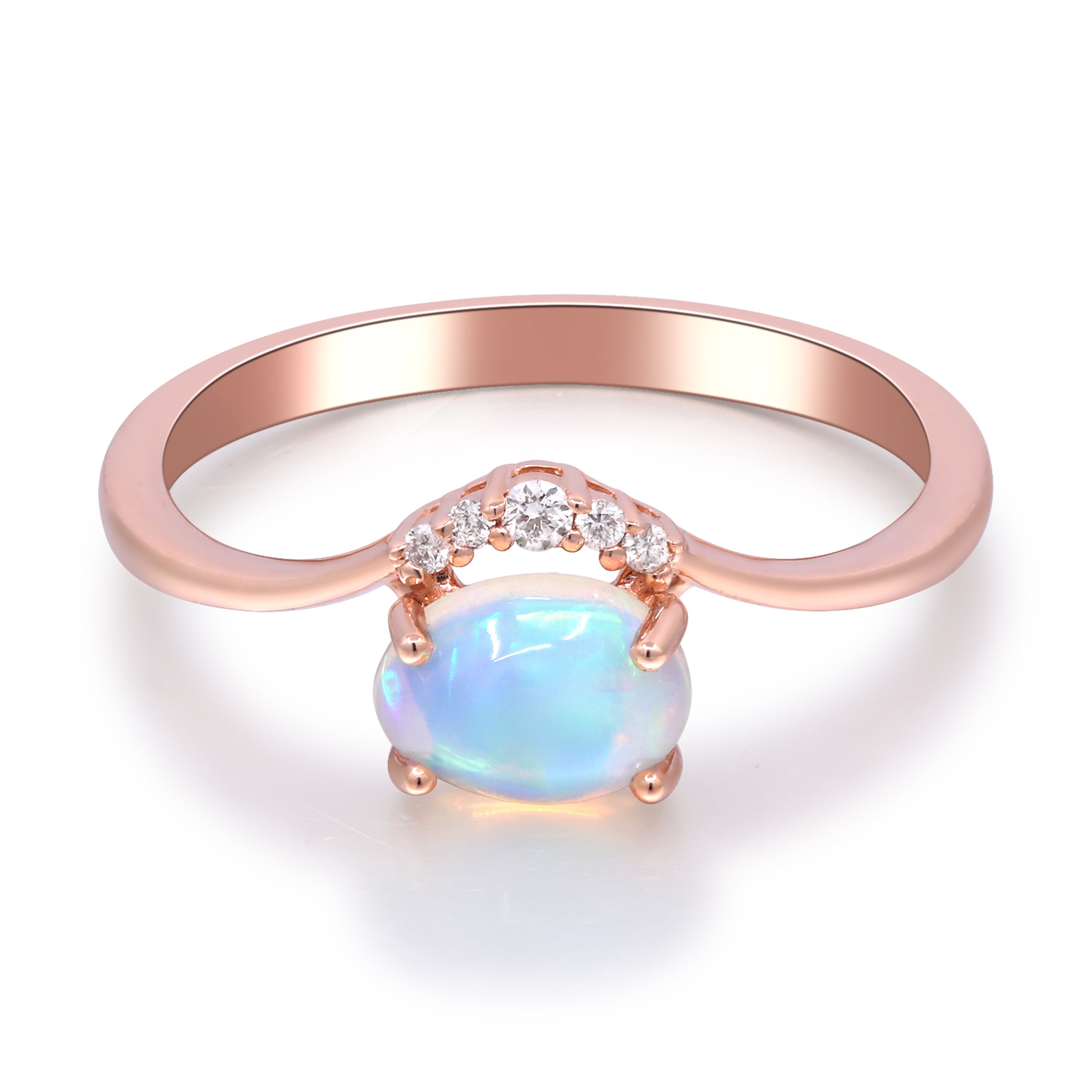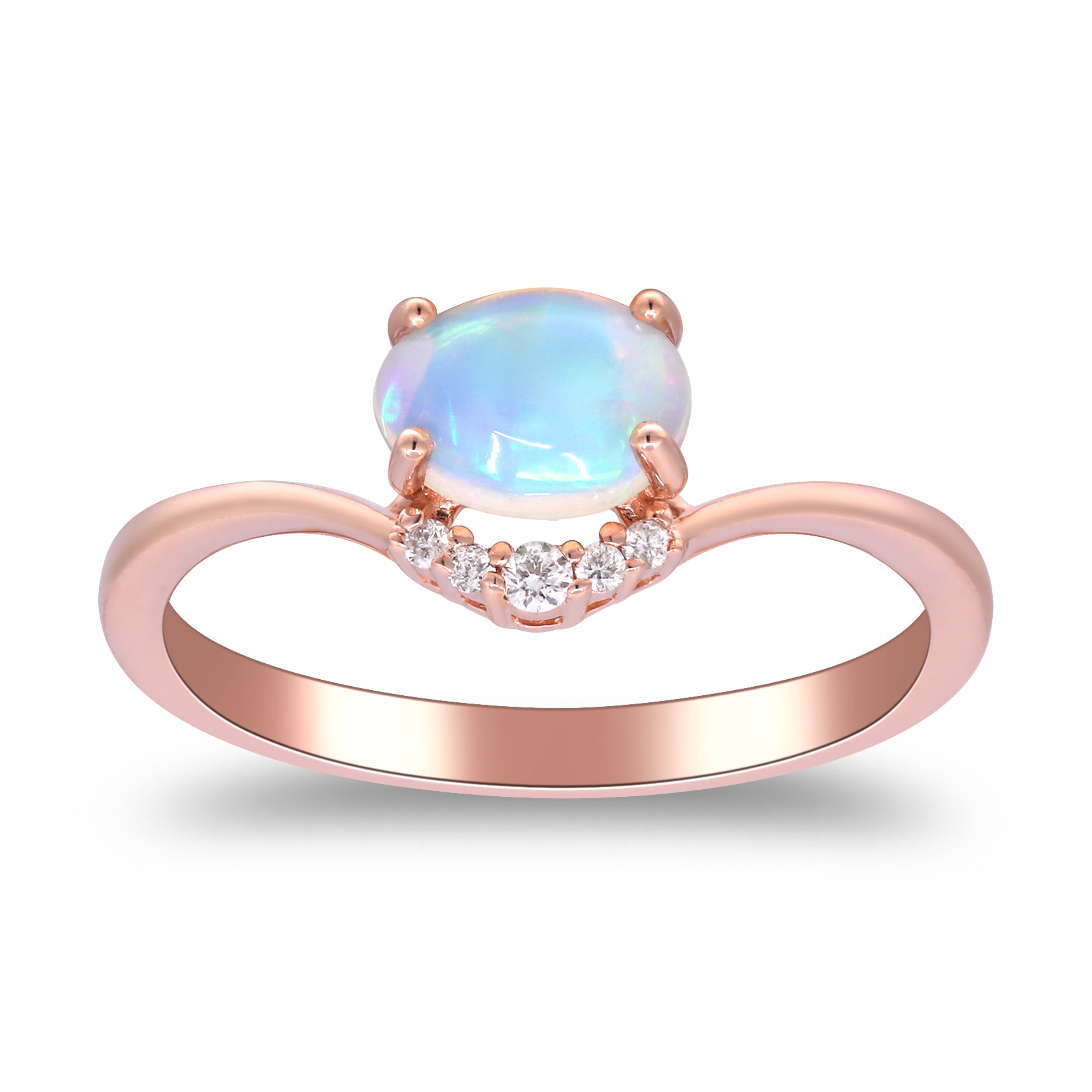 Stunning, timeless and classy eternity Unique ring. Decorate yourself in luxury with this Gin & Grace ring. This ring is made up of 7x5 MM Oval-cut Prong Setting African Opal (1pcs) 0.53 Carat and Round-Cut Prong Setting Diamond (5 pcs) 0.04 Carat accent stones for a lovely design. This ring weighs 1.96 grams. The ring is crafted of shining 10-karat Rose Gold and is completed by a highly polished finish.