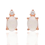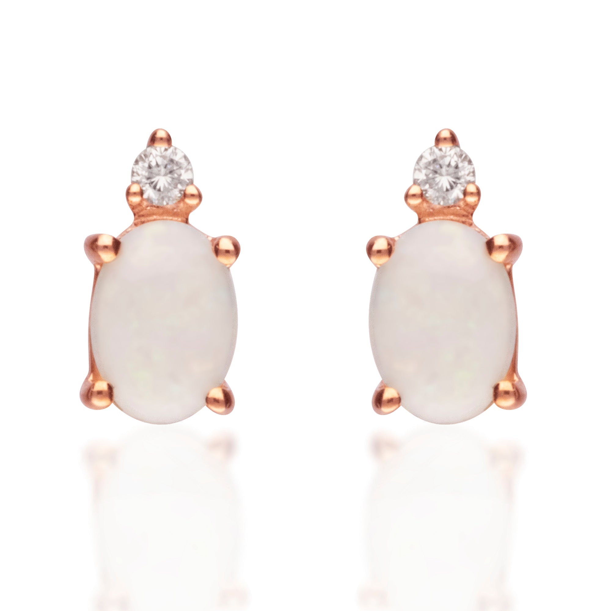 Decorate yourself in elegance with this Earring is crafted from 10K Rose Gold by Gin & Grace Earring. The jewelry boasts 6X8 mm Oval-Cut cabochon setting white color Natural African Opal (2 pcs) 0.90 Carat and Round-Cut prong setting Diamond (2 pcs) 0.08 Carat. This Earring is weight 1.02 grams. This delicate Earring is polished to a high finish shine. Simple Stud clasps keep these earrings securely fastened.