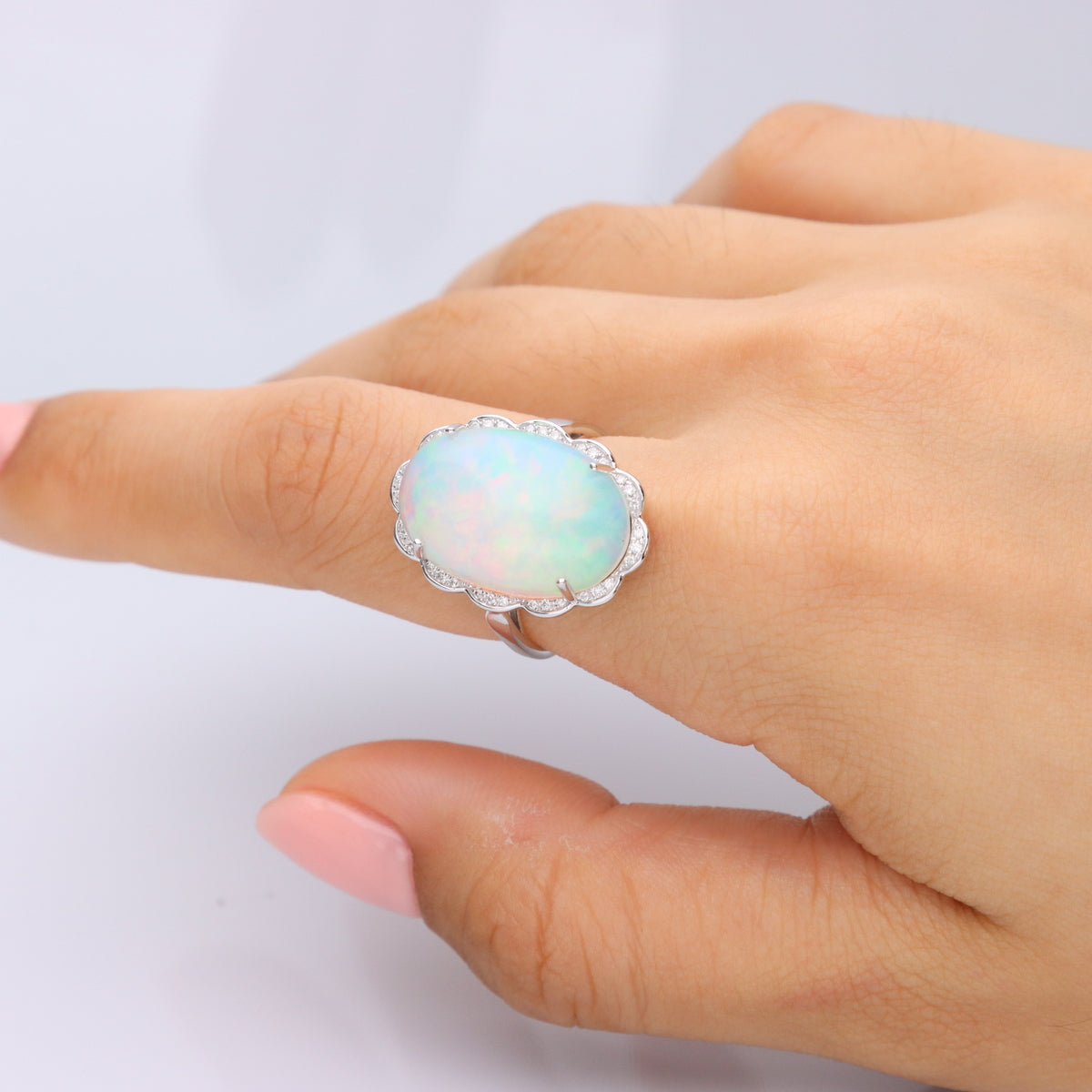 Vida 10K White Gold Oval-Cut African Opal Ring