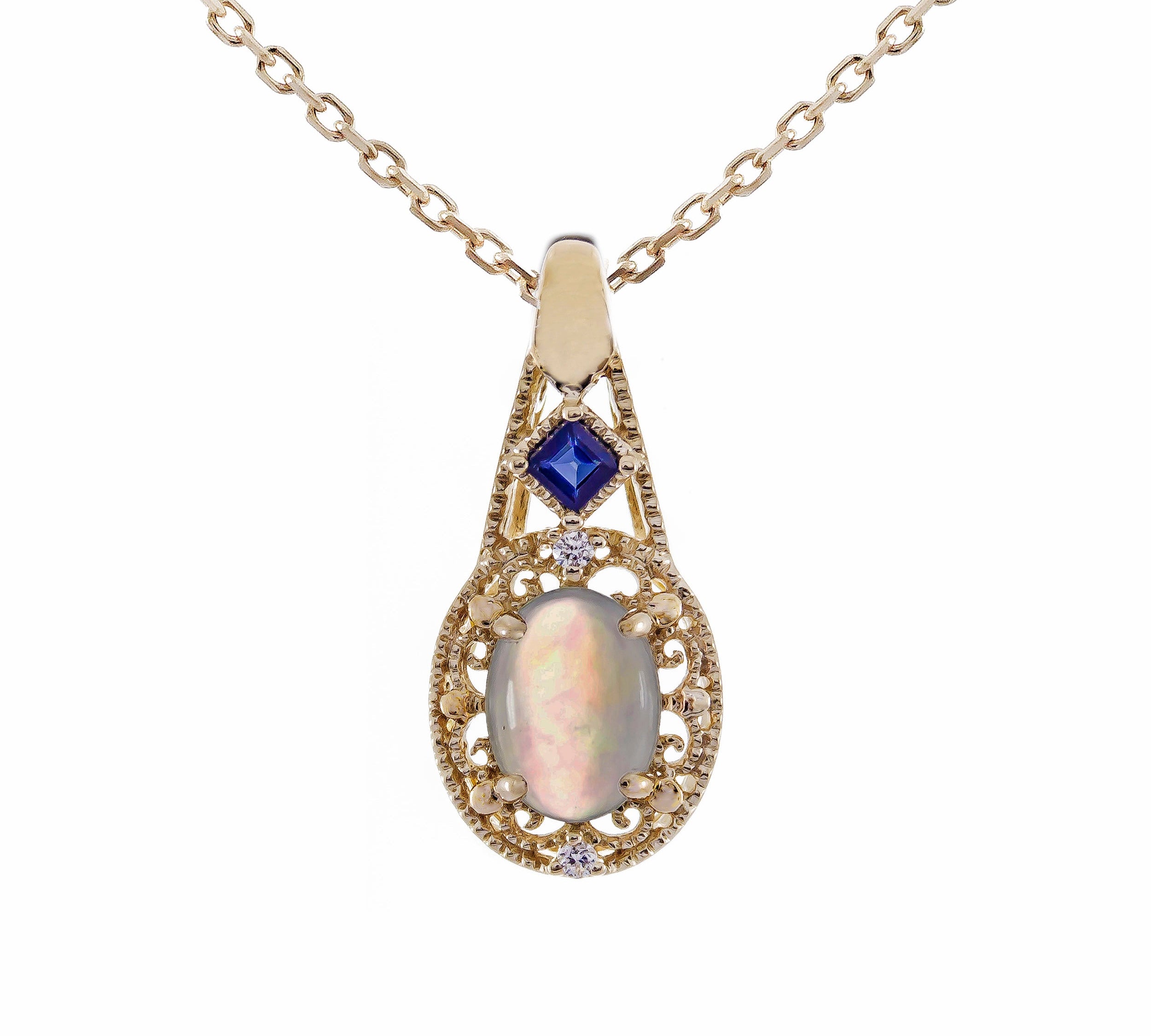 Anna10K Yellow Gold Oval-Cut Opal Pendant