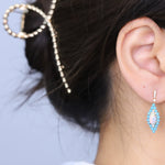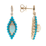 Decorate yourself in elegance with this Earring is crafted from 14K Yellow Gold by Gin & Grace. This Earring is made up of Oval-Cut African Opal (2 pcs) 1.08 carat, Round-cut Turquoise (36 pcs) 1.54 carat and Round-cut White Diamond (20 Pcs) 0.16 Carat. This Earring is weight 3.95 grams. This delicate Earring is polished to a high finish shine.