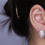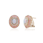 Decorate yourself in elegance with this Earring is crafted from 14K Yellow Gold by Gin & Grace. This Earring is made up of Oval-Cut African Opal (4 pcs) 9.03 carat and Round-Cut White Diamond (40 Pcs) 0.26 Carat. This Earring is weight 5.73 grams. This delicate Earring is polished to a high finish shine.