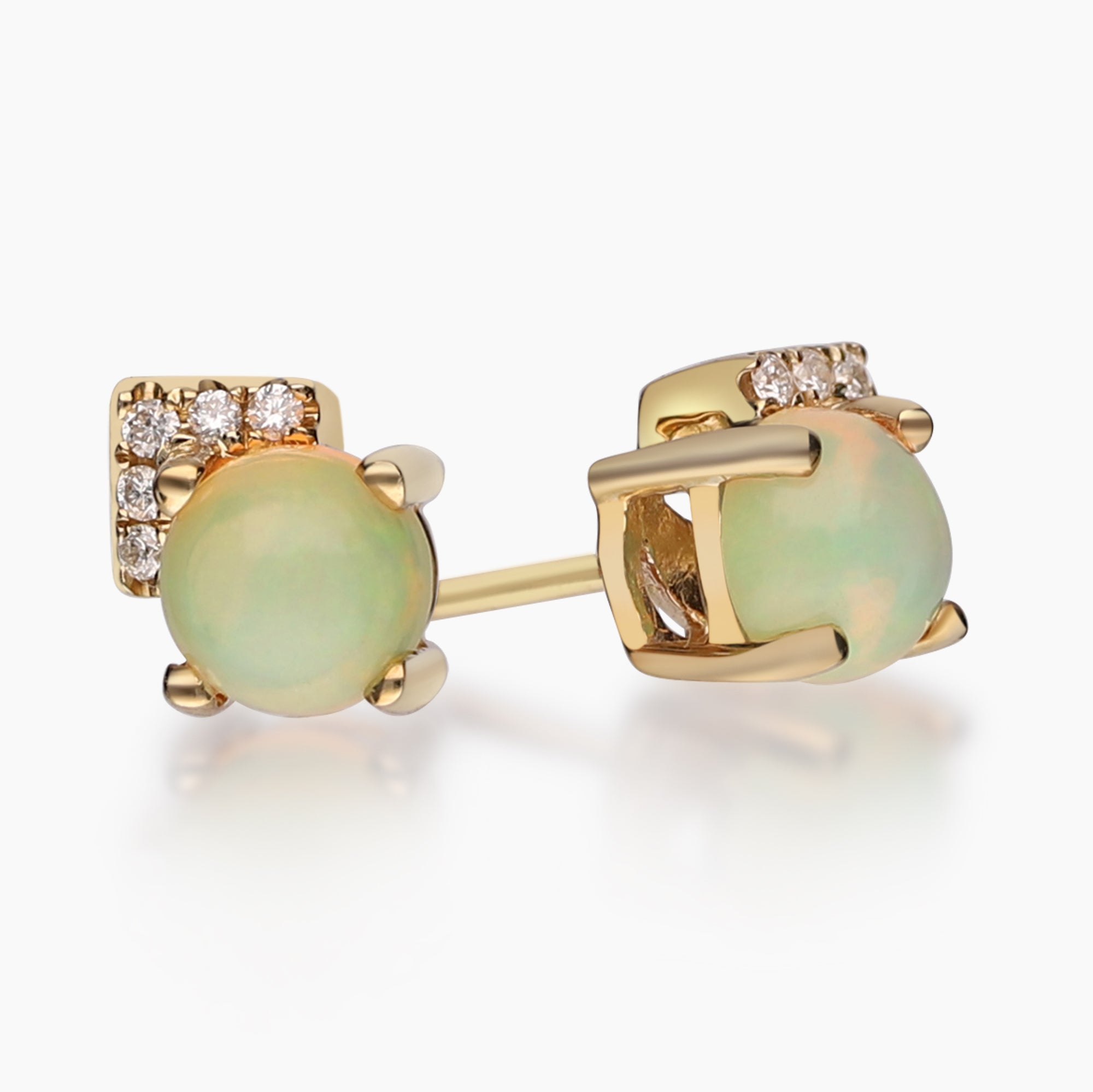 Decorate yourself in elegance with this Earring crafted from 10K Yellow Gold by Gin & Grace. This Earring is made up of Round-Cut Opal (2 pcs) 0.70 carat and Round-cut White Diamond (10 Pcs) 0.05 Carat. This Earring weighs 1.16 grams. This delicate Earring is polished to a high finish shine.
